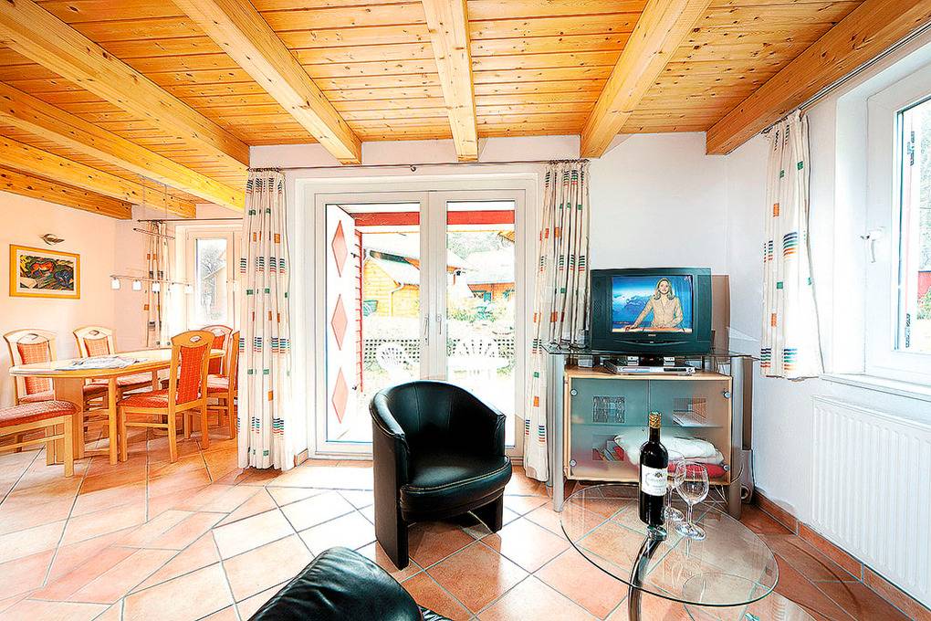 D 92.61B Ferienhaus 2-6 Pers.: 4-Zimmerhaus mit ca. 65 qm Wohnfläche über 2 Etagen. Parterre: Schöner Wohn-/Essraum mit rustikaler Holzbalkendecke, Sitzgruppe, Sat-TV, DVD, Radio/CD, Esstisch, moderner Küchenzeile (Backofen, Spülmaschine). Bad mit Sauna, Dusche, 2 Wb. Separates WC. 1. Etage mit Schrägen: 3 Doppelzimmer. Kleines Bad: Wb, WC.