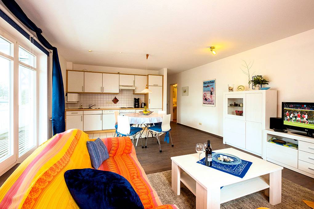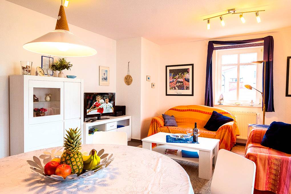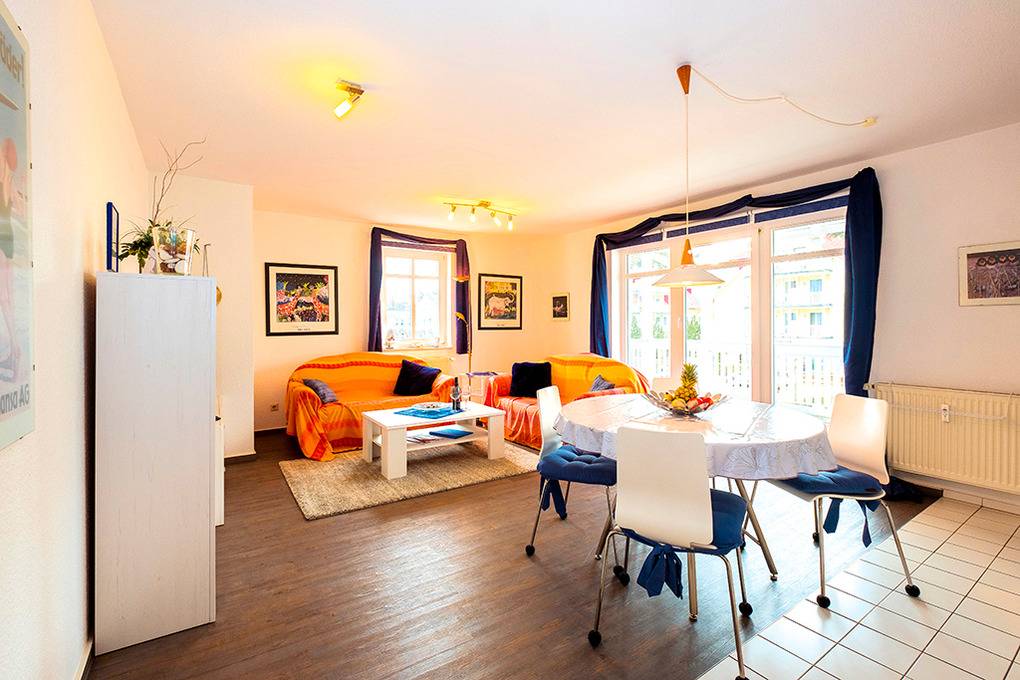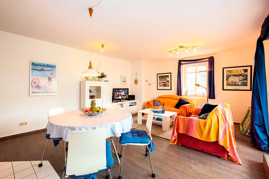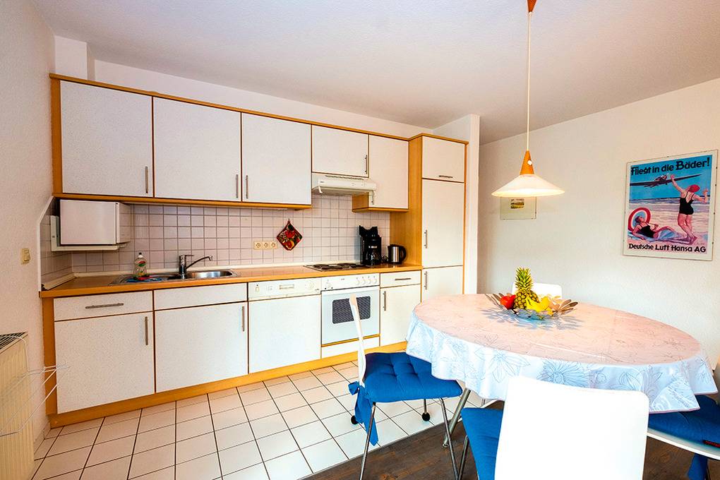 Nebenkosten: Endreinigung 101 € (wird bei Buchung erhoben). Strom, Wasser, Heizung 2 €/Pers/Tag (wird bei Buchung erhoben). Kurtaxe. Bettwäsche, Handtücher leihbar 18 €/Pers (Bestellung, wird bei Buchung erhoben). Zusätzliche Leistungen Kostenloser Internetzugang über W-Lan. 1 Pkw-Stellplatz im Preis inklusive. Kaution 150 € (wird bei Buchung erhoben). Babybett/Hochstuhl zusätzlich zur maximalen Personenzahl je 2 €/Tag (Bestellung, wird bei Buchung erhoben). Haustier nicht erlaubt.Räume & Aufteilung