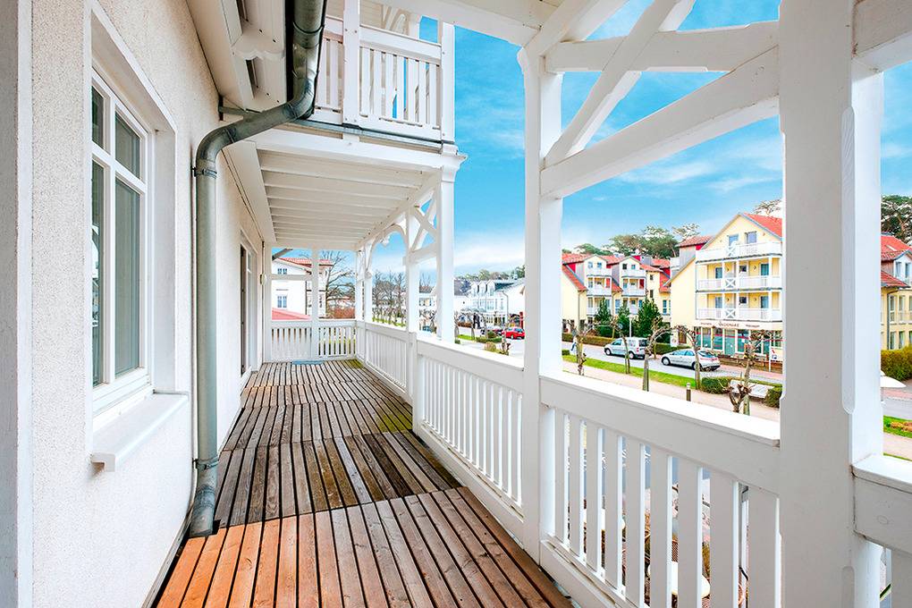 Haus: Schönes Apartmenthaus im Stil der Bäderarchitektur. Komfortable Ferienwohnungen mit geschmackvoller Einrichtung. Kostenloser Internetzugang über W-Lan. Zentralheizung. Balkone. 1 Pkw-Stellplatz/Fewo.