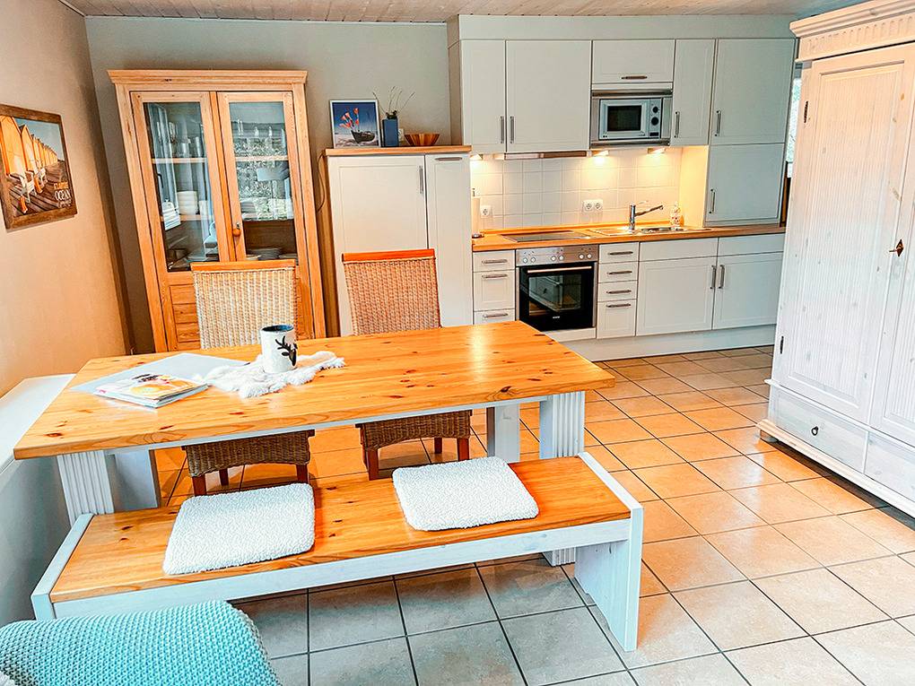 Nebenkosten Strom, Wasser, Heizung 3,60 €/Pers/Tag (wird bei Buchung erhoben). Endreinigung 43 €/Pers. (wird bei Buchung erhoben). Kurtaxe. Bettwäsche, Handtücher leihbar 18 €/Pers (Bestellung, wird bei Buchung erhoben). Zusätzliche Leistungen Kostenloser Internetzugang über W-Lan. 1 Pkw-Stellplatz im Preis inklusive. Sauna auf Wunsch 5 €/Tag (wird bei Buchung erhoben). Kaution 150 € (wird bei Buchung erhoben). Kinder Babybett 2 €/Tag (Bestellung, wird bei Buchung erhoben). Hochstuhl ohne Berechnung (Bestellung). Haustier nicht erlaubt.Räume & Aufteilung