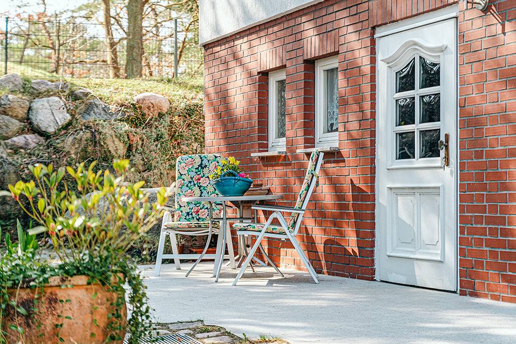 Haus: Ansprechendes Ferienhaus mit drei Ferienwohnungen. Gemütliche Einrichtung. Zentralheizung. Terrasse mit Sitzmöbeln. Pkw-Stellplatz auf umzäuntem Grundstück.