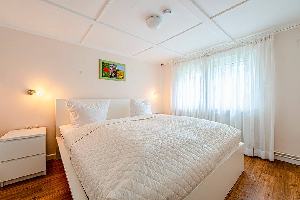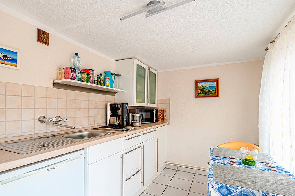 D 92.110 Wohnung 2 Pers.: Freundliche 2 1-2-Zimmerwohnung mit 45 qm Wohnfläche, Parterre. Wohnraum mit Sitzgarnitur, Sat-TV. Separate Küche mit Esstisch, 2 Pl. E-Herd, Mikrowelle. Doppelzimmer. Bad/WC.
