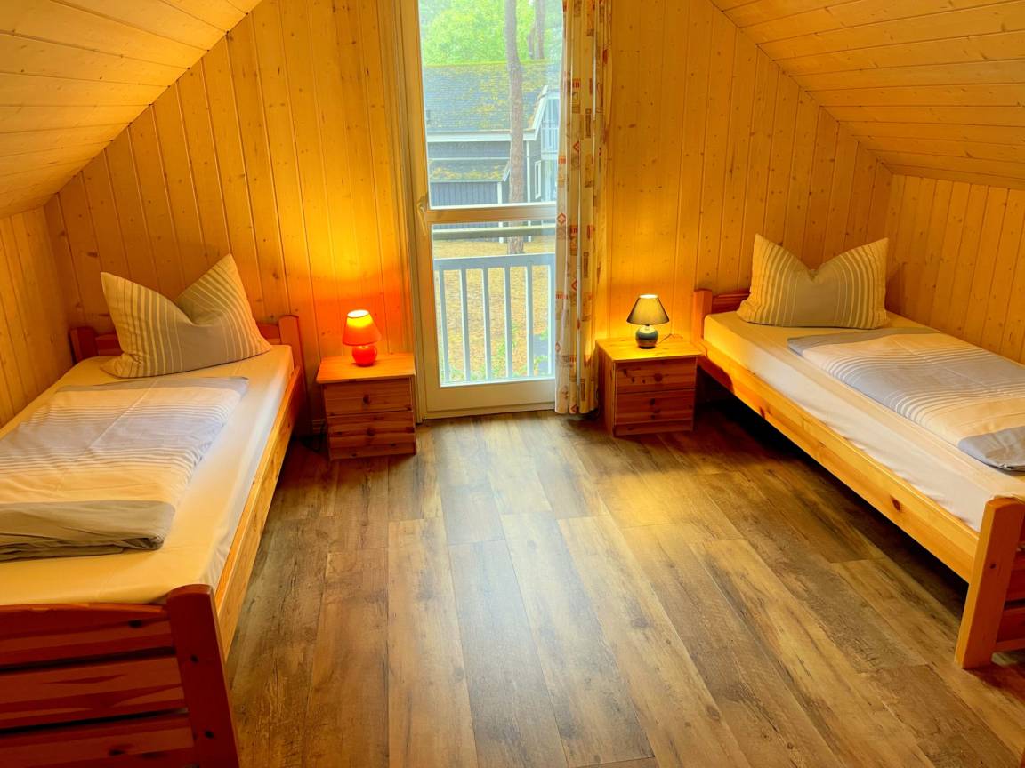 Das zweite Schlafzimmer befindet sich im Obergeschoss mit zwei Einzelbetten.
