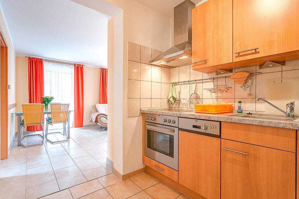 D 92.19A Wohnung 2-4 Pers.: Ansprechende 3-Zimmerwohnung mit 64 qm Wohnfläche. Großzügiger Wohn-/Essraum (26 qm) mit Couchgarnitur, Sat-TV, Esstisch, moderner Einbauküche (Backofen, Spülmaschine). 2 Doppelzimmer. Bad/WC. Balkon mit Sitzmöbeln.