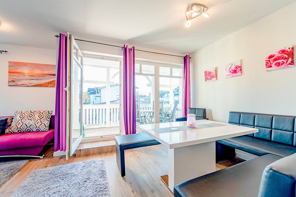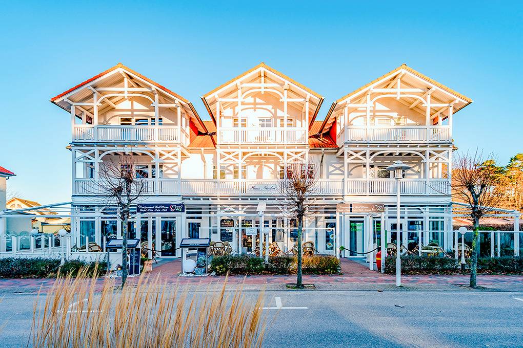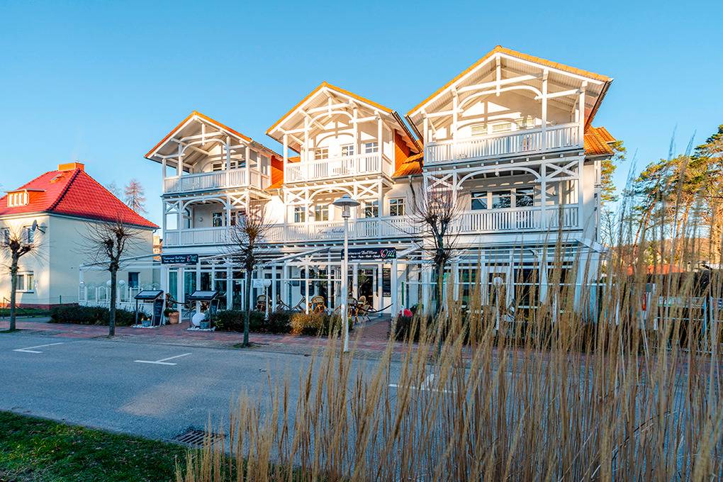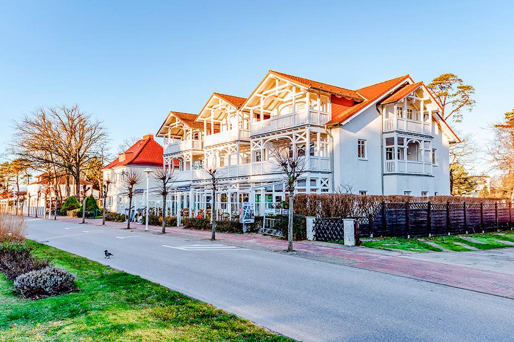Haus: Schönes Apartmenthaus im Stil der Bäderarchitektur. Komfortable Ferienwohnungen mit geschmackvoller Einrichtung. Kostenloser Internetzugang über W-Lan. Zentralheizung. Balkone. 1 Pkw-Stellplatz/Fewo.