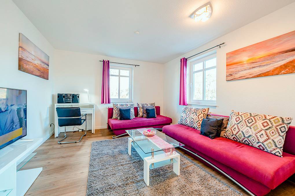 Nebenkosten: Endreinigung 98 € (wird bei Buchung erhoben). Strom, Wasser, Heizung 2 €/Pers/Tag (wird bei Buchung erhoben). Kurtaxe. Bettwäsche, Handtücher leihbar 18 €/Pers (Bestellung, wird bei Buchung erhoben). Zusätzliche Leistungen: Kostenloser Internetzugang über W-Lan. 1 Pkw-Stellplatz im Preis inklusive. Kaution 150 € (wird bei Buchung erhoben). Babybett/Hochstuhl zusätzlich zur maximalen Personenzahl je 2 €/Tag (Bestellung, wird bei Buchung erhoben). Haustier nicht erlaubt.Räume & Aufteilung