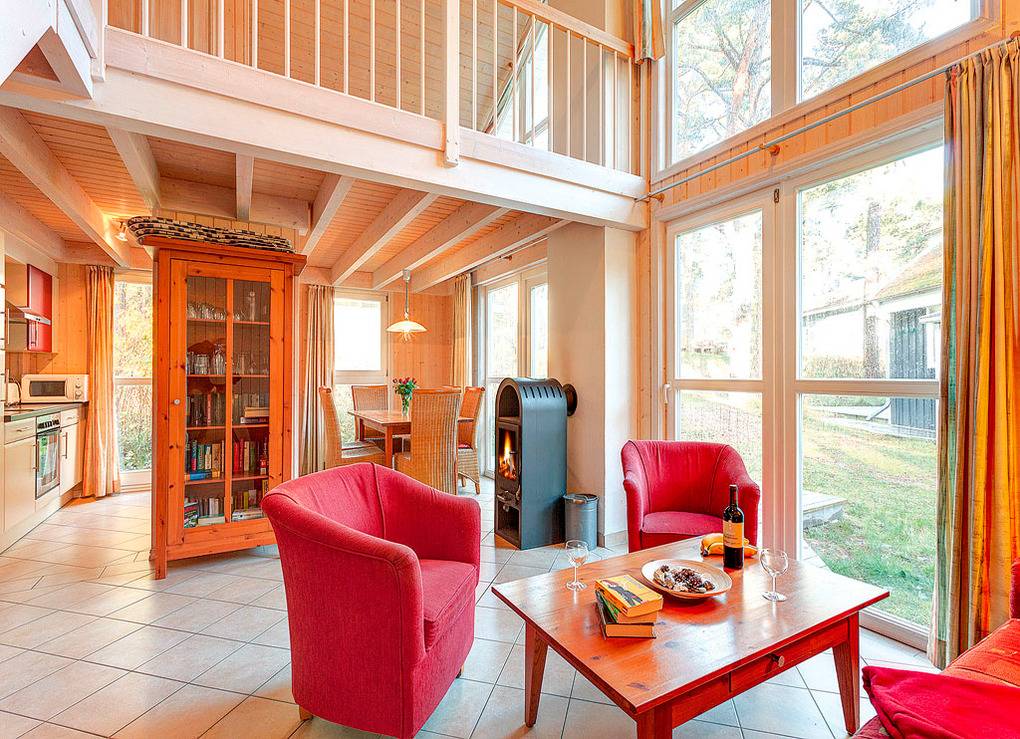 Haus: Exklusives Ferienhäuser im skandinavischen Stil mit Sauna und Kaminofen, 2006 fertiggestellt. Gemütliches Ambiente durch Holzvertäfelung im ganzen Haus. Gehobene, geschmackvolle Einrichtung. Lichtdurchflutete Architektur mit großer Panorama-Fensterfront im Wohnbereich. Kostenloser Internetanschluss über W-Lan. E-Heizung, Fußbodenheizung, Warmwasser über Durchlauferhitzer. Terrasse mit Sitzmöbeln. 1 Pkw-Stellplatz im Ferienhausgebiet vorhanden.