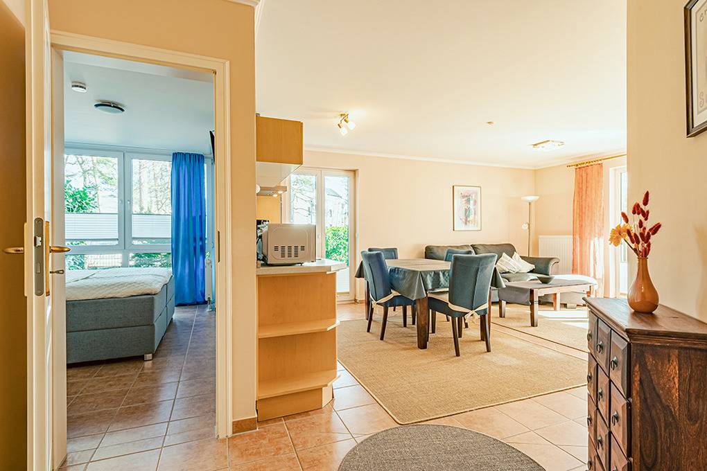 Haus: Schönes Apartmenthaus im Stil der Bäderarchitektur. Die Wohnungen sind modern und geschmackvoll eingerichtet. Sat-TV. Kostenloser Internetzugang über WLan. Zentralheizung. Terrasse (Sitzmöbel). Aufzug im Haus. 1 Pkw-Stellplatz/Fewo.