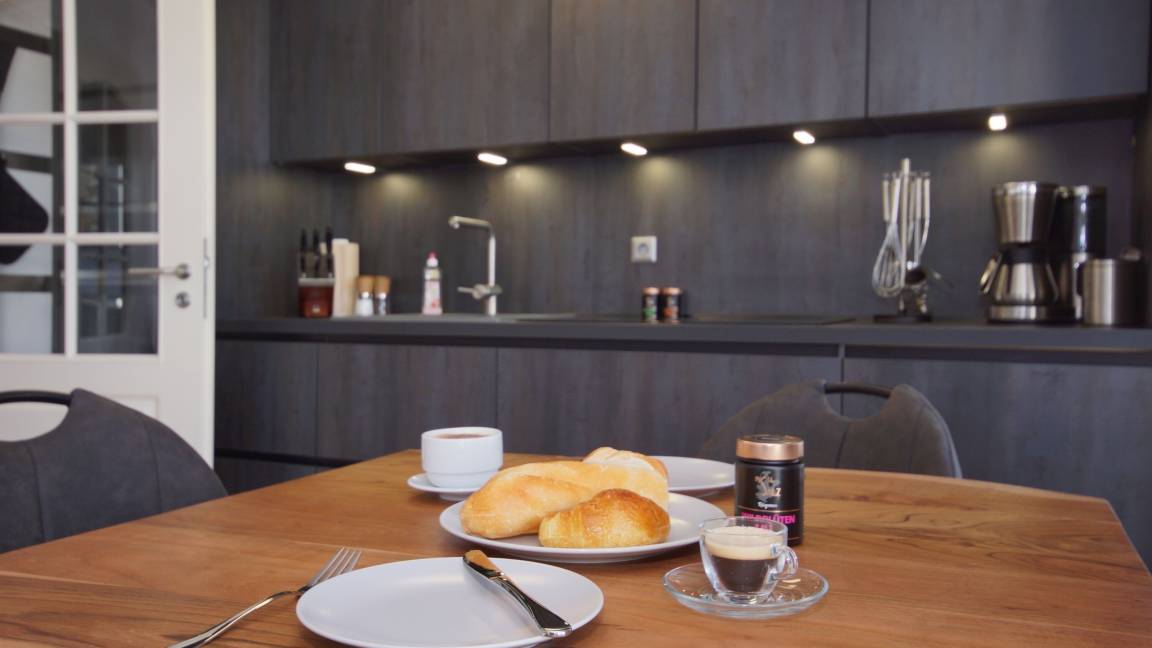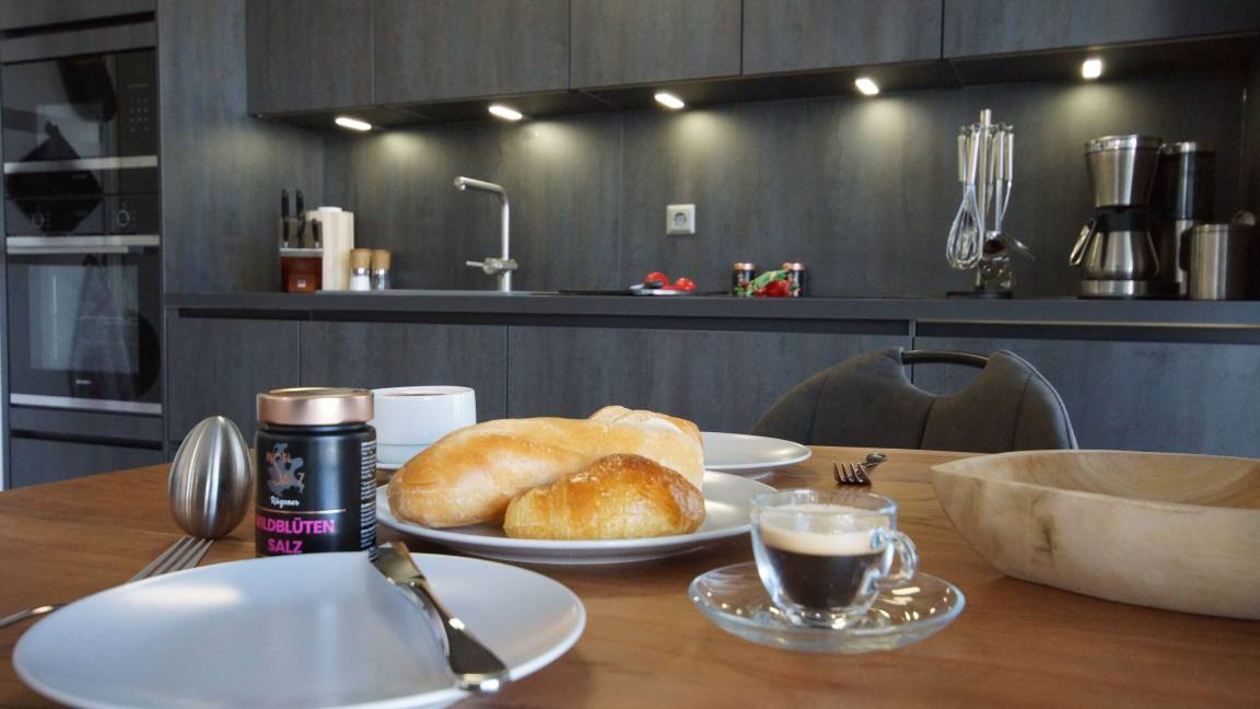 Die hochwertige, offene Küchenzeile bietet Ihnen alles, was es für einen gemütlichen Kochabend braucht; ein Cerankochfeld, ein Backofen, eine Mikrowelle, sowie ein Kühlschrank und diverse Küchenkleingeräte und Utensilien. Im hell eingerichteten Schlafbereich befindet sich ein großes Doppelbett (180 x 200) und ein geräumiger Kleiderschrank.
