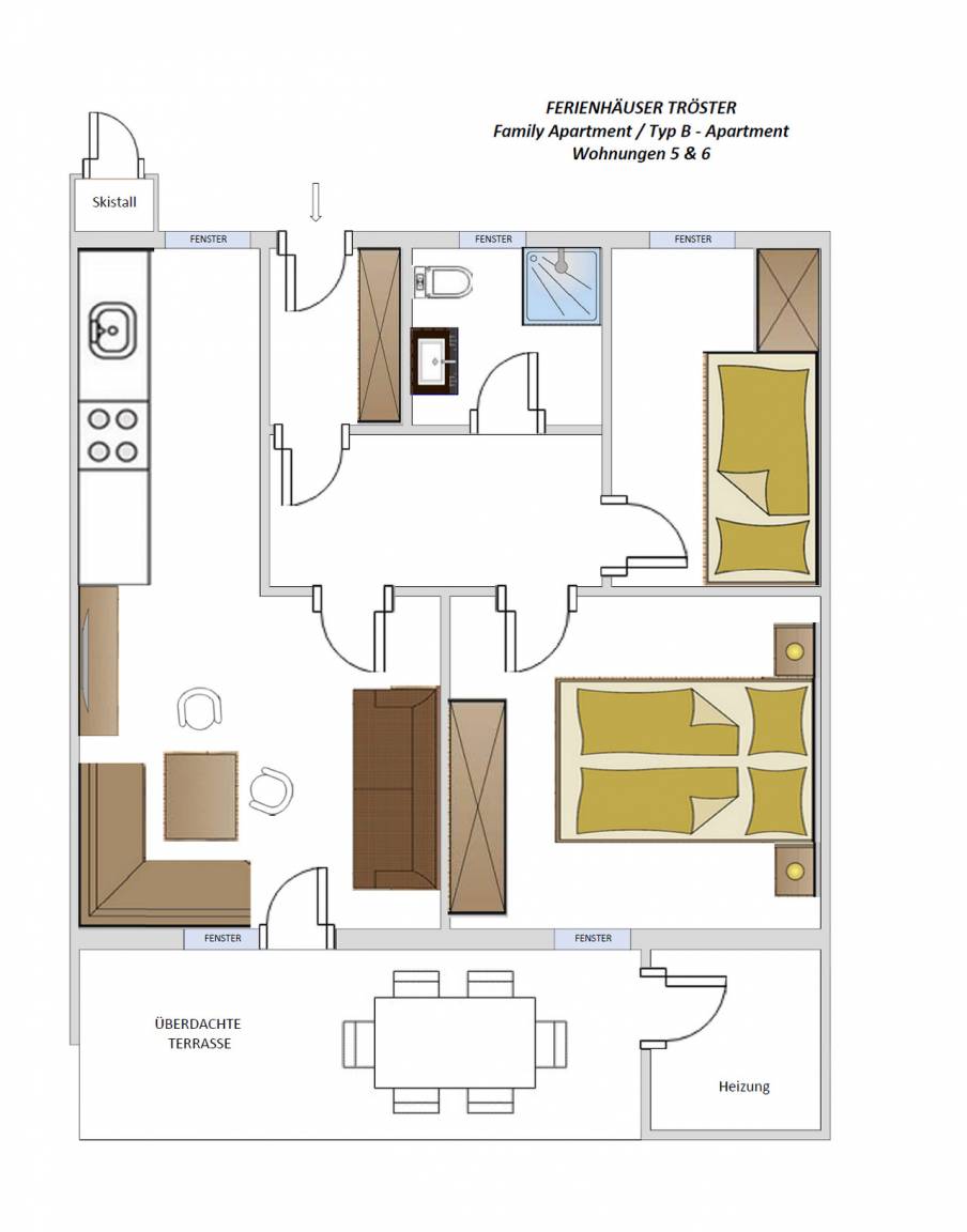 Natur, Ruhe, frische Luft, klares Wasser, Bergromantik und das einzigartige Gefühl wirklich frei zu sein, all dies und noch viel mehr erleben Sie bei uns in den Ferienhäuser Tröster. Unsere Appartements liegen zentral, aber dennoch ein wenig abseits des Ortstrubels. Gemütliche Stunden sind Ihnen in unseren Häusern somit garantiert. Die Gehzeit in den inneren Ortskern und zur St. Kathrein Therme beträgt nur 5 Minuten.