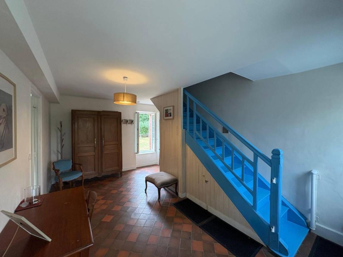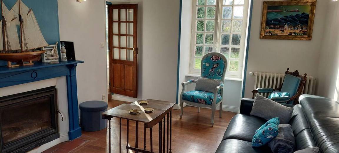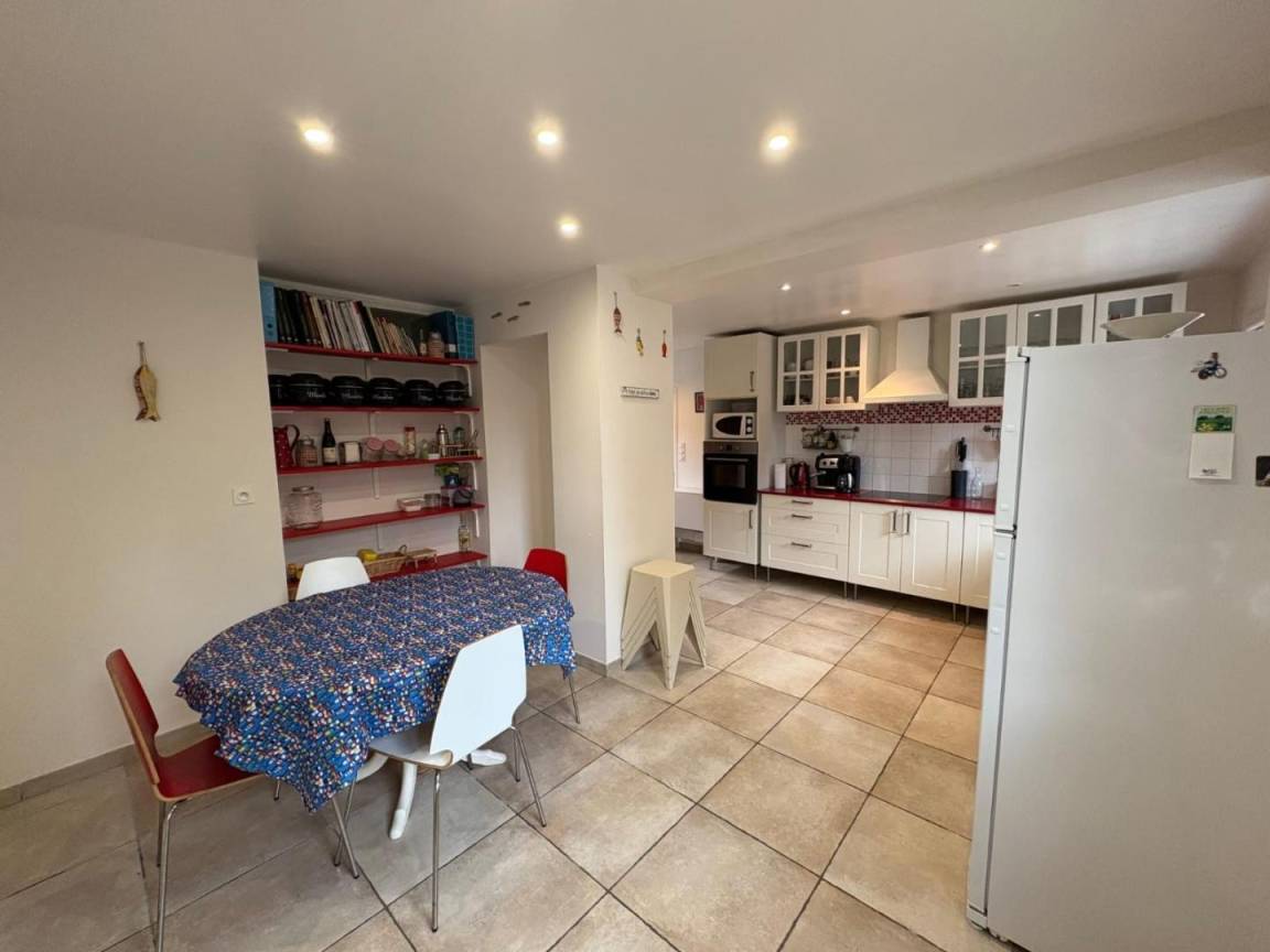 Einfamilienhaus. Im Erdgeschoss: Eingangshalle. Wohnzimmer mit Kamin (Smart-TV, Glasfaser-Internet). Esszimmer mit Holzofen. Eingerichtete und ausgestattete Küche (Induktionskochfeld, Elektroofen, Dunstabzugshaube, Geschirrspüler, Mikrowelle, Gefrierfach). Hauswirtschaftsraum (Waschmaschine). WC. Veranda. Im 1. Stock: Sch 1 (Etagenbett 90x200). Sch 2 (Bett 160 cm). Duschraum mit WC (Waschbecken, Duschkabine, Handtuchwärmer, Föhn). Sch 3: 1 Bett 160x200 cm und 1 Bett 80x190 cm. Sch 4: 1 Bett 160x200 cm. Badezimmer mit WC (Waschbecken, Badewanne). Im 2. Stock: Sch 5 (3 Betten 90x200 cm) mit Bibliothek. Außenbereich: Gekiester Hof, durch eine Schranke gesichert. Privater umzäunter Garten. Terrasse. Gartenmöbel. Gasgrill und Barbecue. Überdachter Unterstand. Parkplatz. Luftthermische Heizung inbegriffen. Alle Gebühren inbegriffen. Bettwäsche und Handtücher werden gestellt (Betten bei Ankunft bezogen). Reinigung inklusive. Erster Korb Holz gratis. Babyausstattung.
