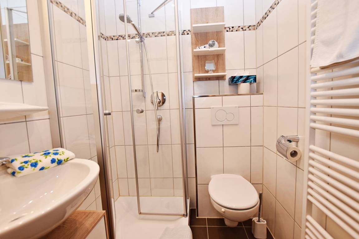 Zur Ausstattung zählen neben Dusche/WC mit Haartrockner und Kosmetikspiegel, eine gemütliche Sitzgruppe, Wasserkocher, SAT-TV und Radiowecker . Als besonderen Service bieten wir ein energiespendendes Schlemmer-Frühstück.