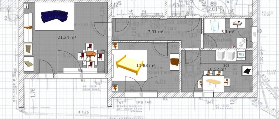 In der Ferienwohnung gibt es neben dem Bad ein Schlafzimmer, eine Küche und einen Wohn-/Eingangszimmer.