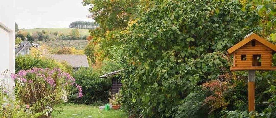 Aus allen Wohnräumen haben Sie freien Blick in den naturnahen Garten – mit etwas Glück lässt sich dabei ein Vogel oder Eichhörnchen beobachten.