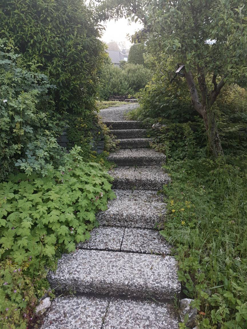Unsere Feriengäste genießen einen eigenen, abgetrennten Terrassenbereich mit schönem Blick in den Garten.