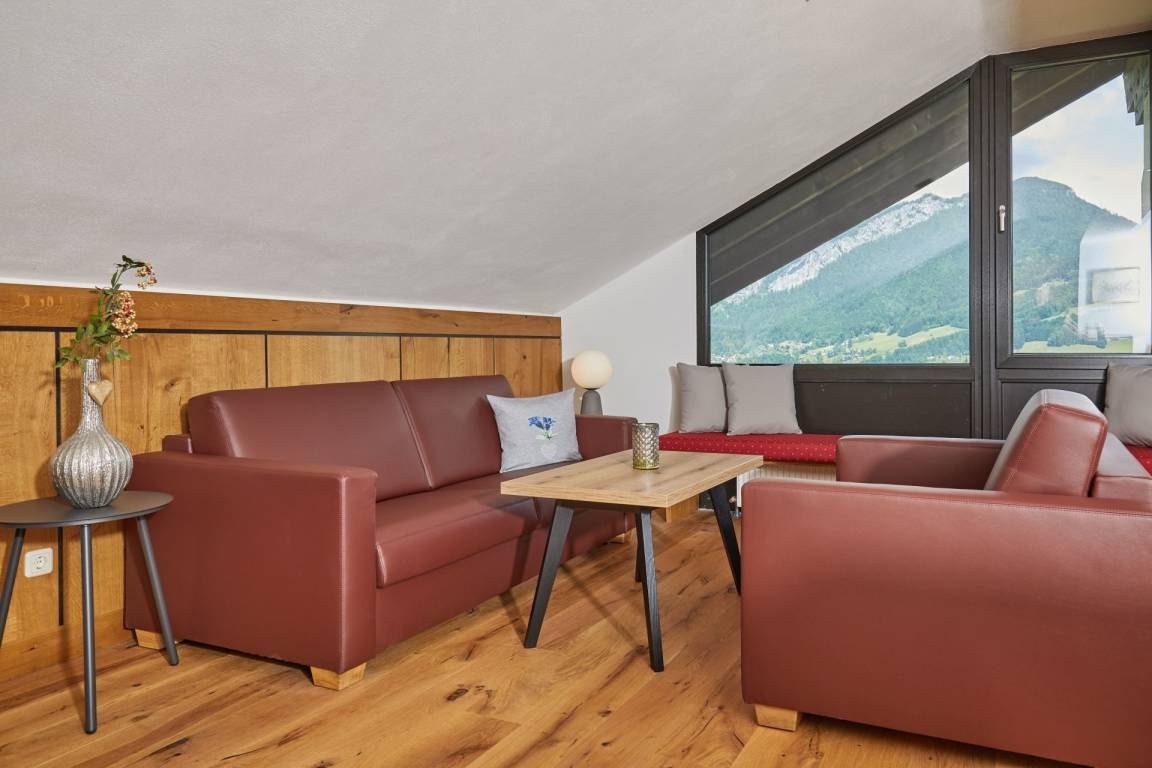 Als Gast in unserem Appartement in der Nähe Wolfgangsee und Hallstätter See nutzen Sie das Hallenbad mit Panorama- und Bergblick und den neuen Wellnessbereich mit Panoramasauna und großem Ruheraum kostenfrei.