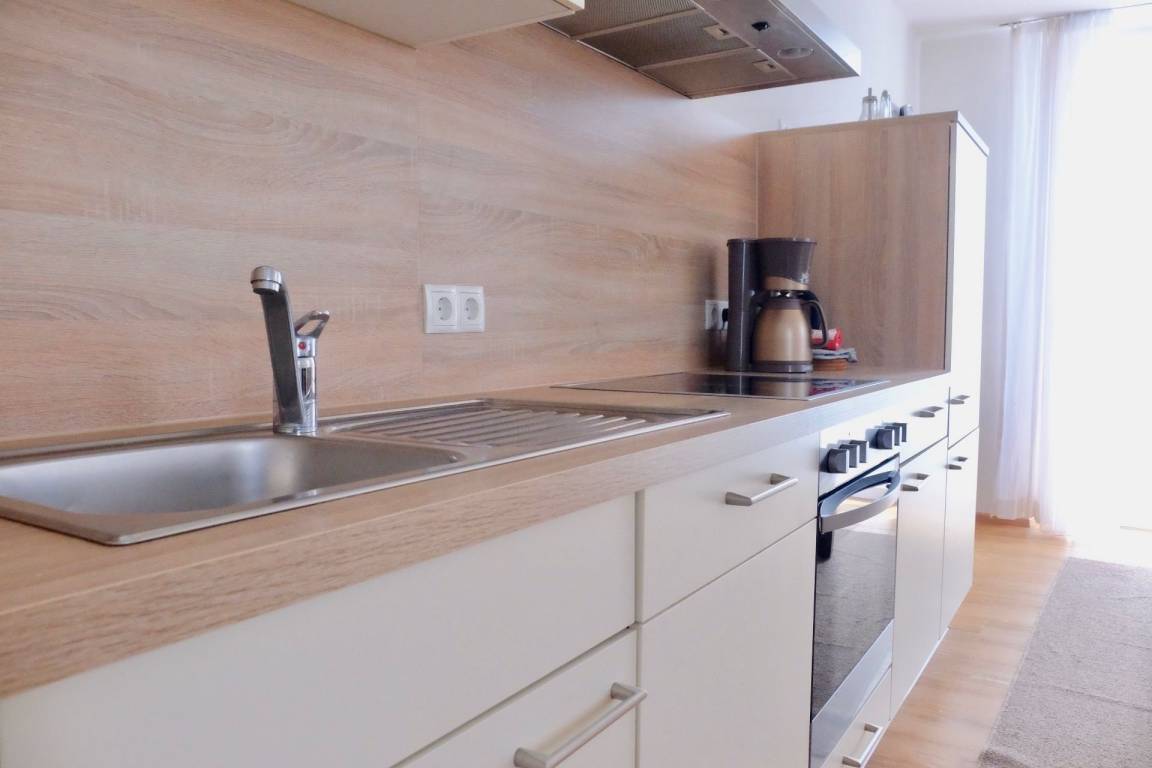 Ferienwohnung in sehr guter Lage mit direkter Busanbindung, 2 Stationen zur Therme, 150 Meter zum Stadtplatz. Komplett ausgestattet Küche.