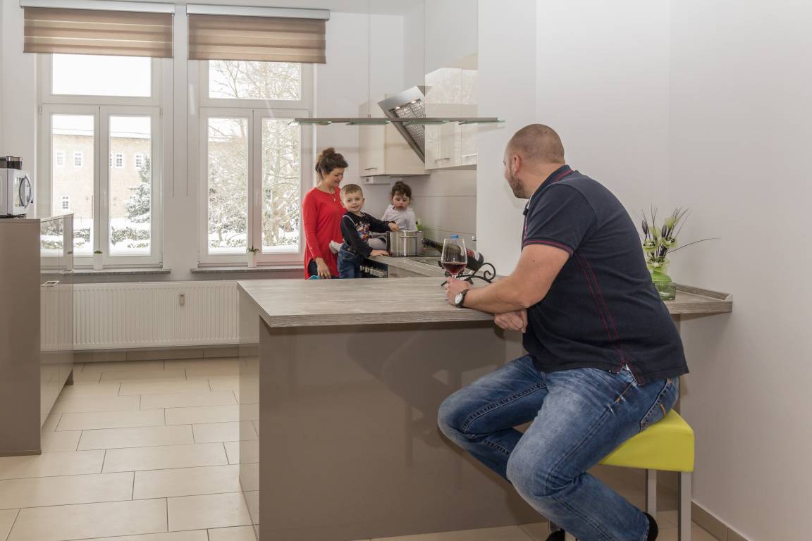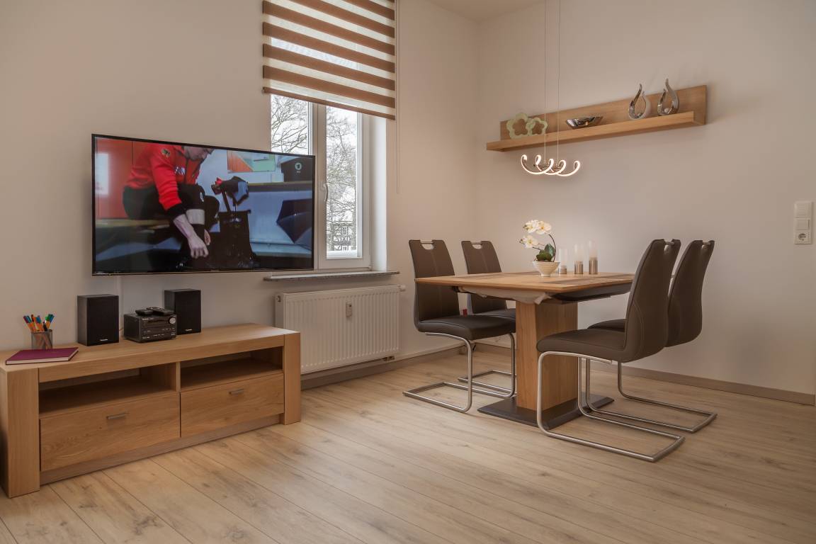 Wie der Name schon sagt, gehört zu "Am Schlosspark " auch die größere Ferienwohnung (115 qm) "Am Schlosspark", somit können wir sogar bis zu 12 Personen gemütlich bei uns unterbringen.