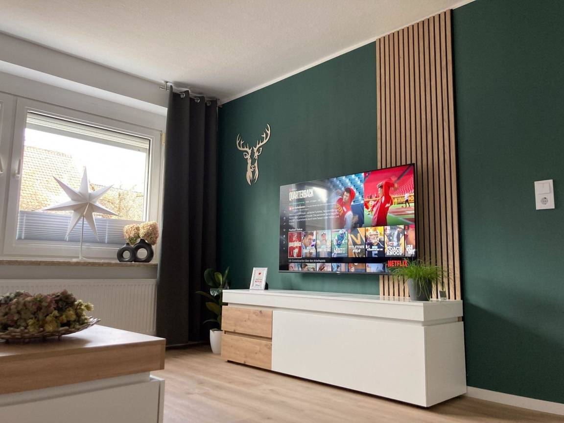 Der "Platzhirsch" bietet Euch ein gemütliches Schlafzimmer mit einem superkomfortablen Boxspringbett, ein geräumiges Wohnzimmer mit einer sehr bequemen Couch für eine weitere Schlafgelegenheit, eine modern ausgestattete Küche mit Esstisch und ein sehr großzügiges Bad mit luxuriöser Dusche und separatem WC. Natürlich steht Euch ein leistungsstarkes WLAN zur Verfügung und für regnerische Tage findet Ihr im Wohnzimmer einen Flatscreen-TV mit Netflix und Disney+ zu Eurer freien Verfügung. Und ein paar Gesellschaftsspiele und Bücher zum Schmökern warten ebenfalls auf Euch.