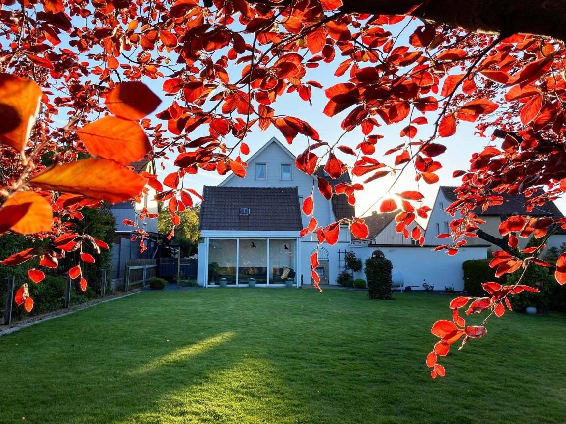 Zu jeder Wohnung gehört eine abschließbare Garage auf dem umzäunten Grundstück und der große Garten mit der namensgebenden Purpurbuche darf von unseren Feriengästen exklusiv genutzt werden. Dort laden gemütliche Sitzecken, unser uriger Strandkorb oder – zum Beispiel an regnerischen Tagen – der großzügige Wintergarten zum Chillen ein.