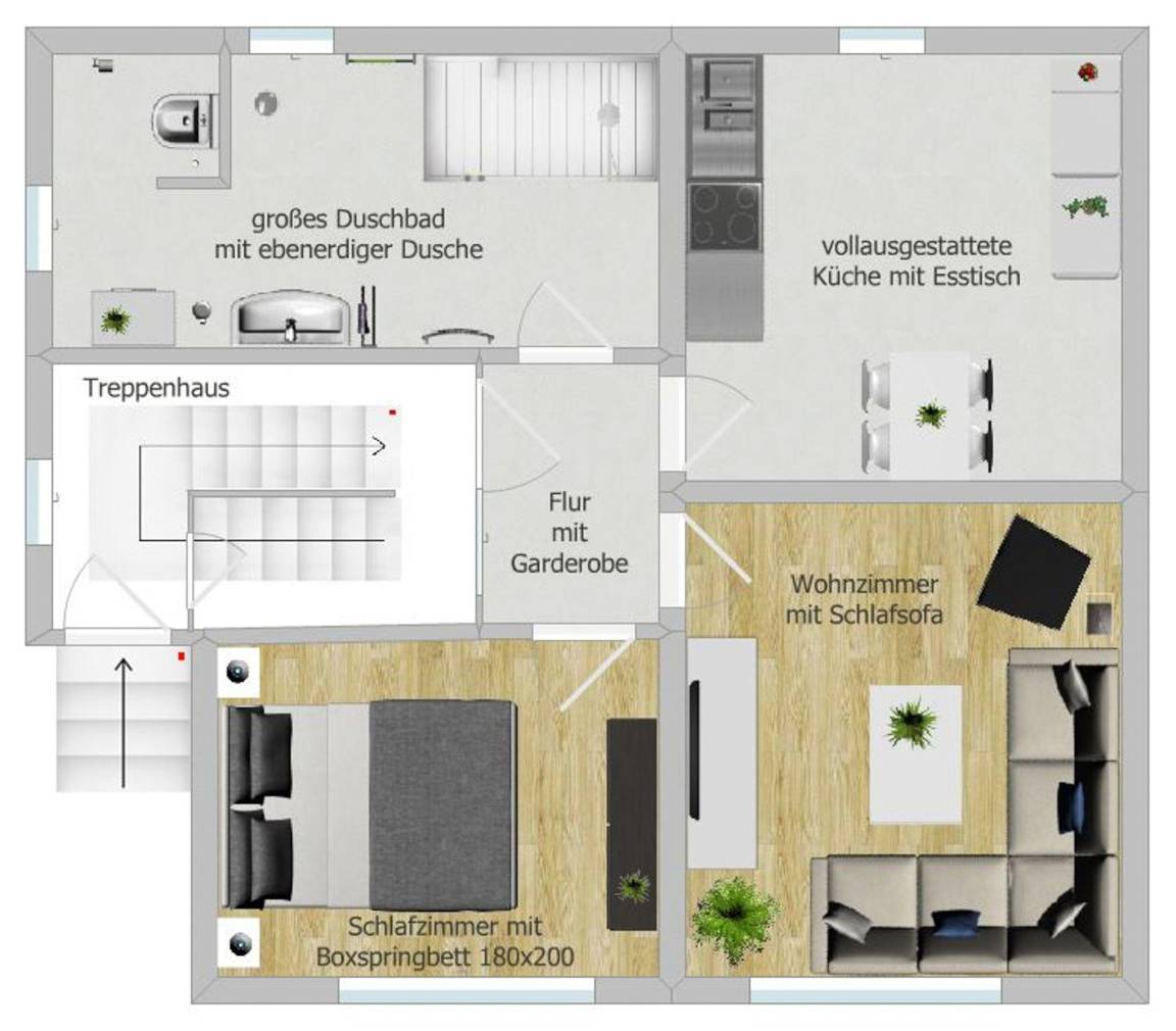 60 m² Ferienwohnung ∙ 1 Schlafzimmer ∙ 3 Gäste