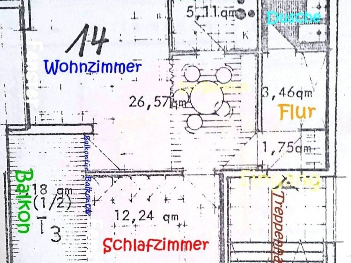 Bitte schauen Sie sich das Außenfoto wegen der Lage der Wohnung an.