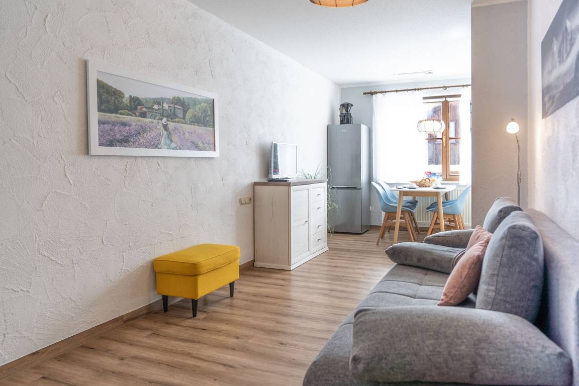 Die gemütliche und moderne 2-Zimmer-Ferienwohnung mit 40 qm bietet Platz für 1-4 Personen und befindet sich in ruhiger Lage. Einkaufsmöglichkeiten und Zentrum sind nur 5 Minuten zu Fuß entfernt. Geeignet für Paare, junge Familien, Ideal für Natur- und Sportfeunde.