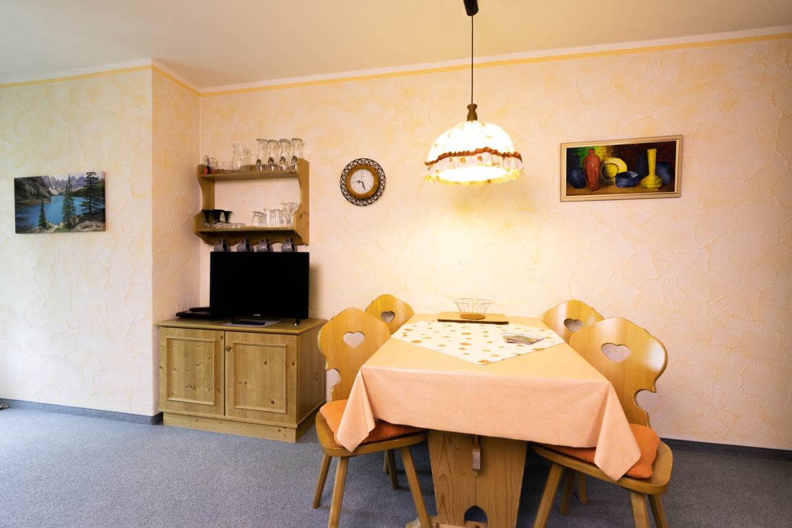 Der helle Wohnraum mit anschließender Küche und dem schönen Balkon mit dem tollen Bergblick bieten Ihnen Platz zur Entspannung. Bei einem Glas Wein können Sie hier den Tag wunderbar ausklingen lassen. Das Schlafzimmer ist mit einem Doppelbett ausgestattet. Es besteht die Möglichkeit, ein Zustellbett im Schlafzimmer oder Wohnzimmer für Sie einzurichten. Im Bad finden Sie eine Dusche, WC und einen Föhn.