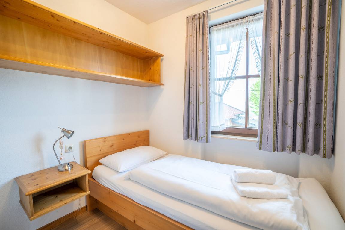 Diese alpendische und gemütliche 3-Zimmer Ferienwohnung bietet Ihnen auf 51 qm viel Komfort. Hier können Sie in dem hellen Wohnraum entspannen und in behaglicher Atmosphäre die nächsten Ausflüge planen. WLAN steht Ihnen natürlich kostenlos zur Verfügung. Der Balkon bietet Ihnen einen phantastische Sicht in die Allgäuer Alpen. Der Essplatz lädt zu einer gemütlichen Runde ein und die voll ausgestatteten, neuen Küche wird Ihnen die Arbeit erleichtern. Hier finden Sie alles, was an Arbeitsmitteln für den täglichen Bedarf nötig ist. Das Schlafzimmer bietet Ihnen ausreichend Platz für Ihre Urlaubsgarderobe und in dem angrenzenden Einzelzimmer kann ein weiteres Familienmitglied ungestört schlafen. Im Bad finden Sie die Dusche, ein WC und natürlich auch einen Föhn.