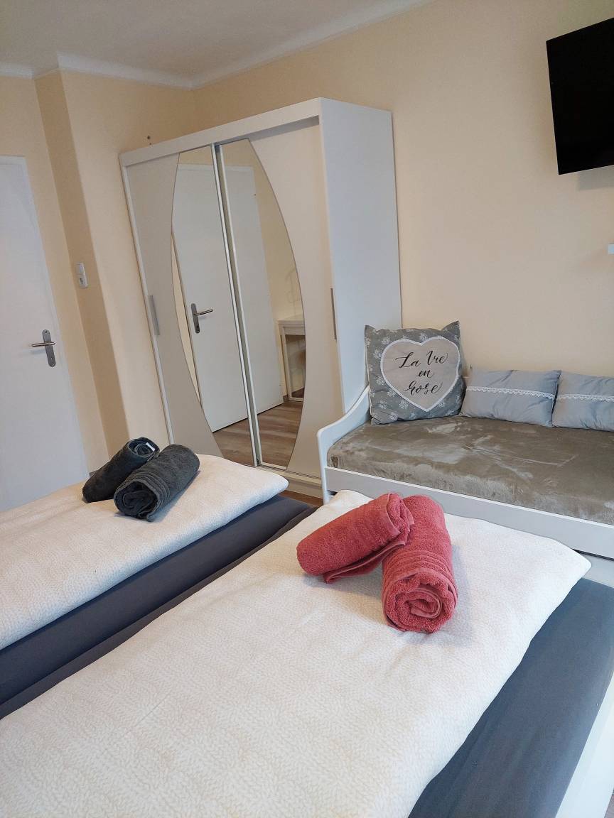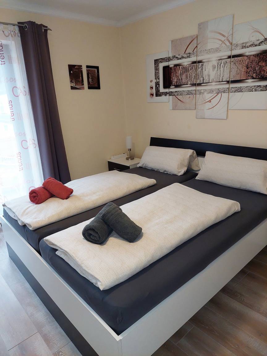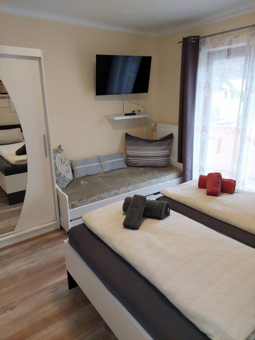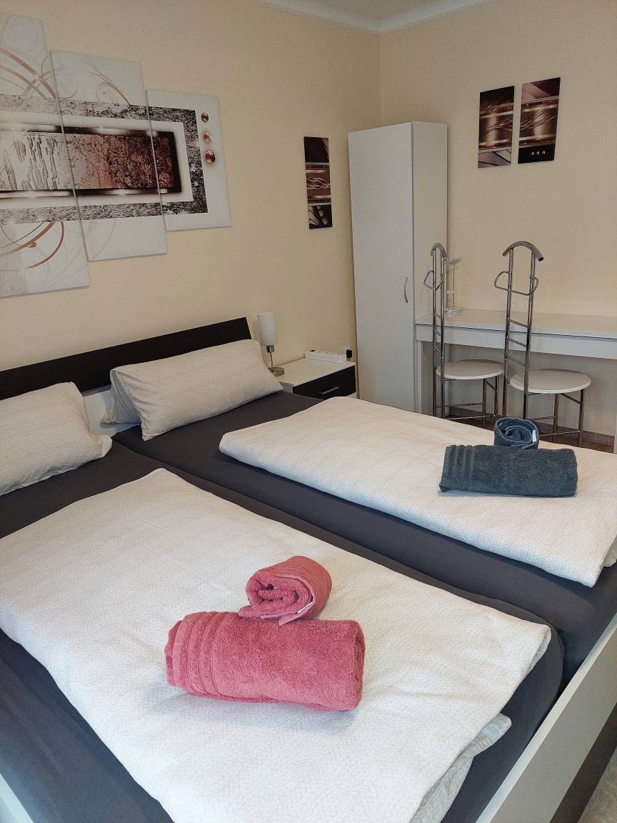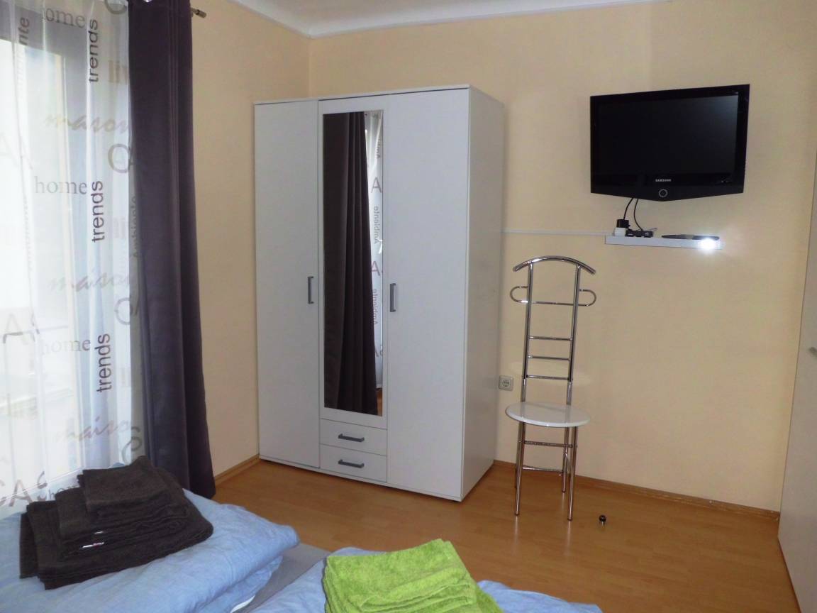 Die 2 Schlafzimmer sind mit Doppelbetten,Kleiderschrank,Herrendiener und Fernseher ausgestattet. Ein Schlafzimmer verfügt zudem über einen Schreibtisch