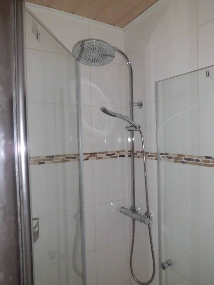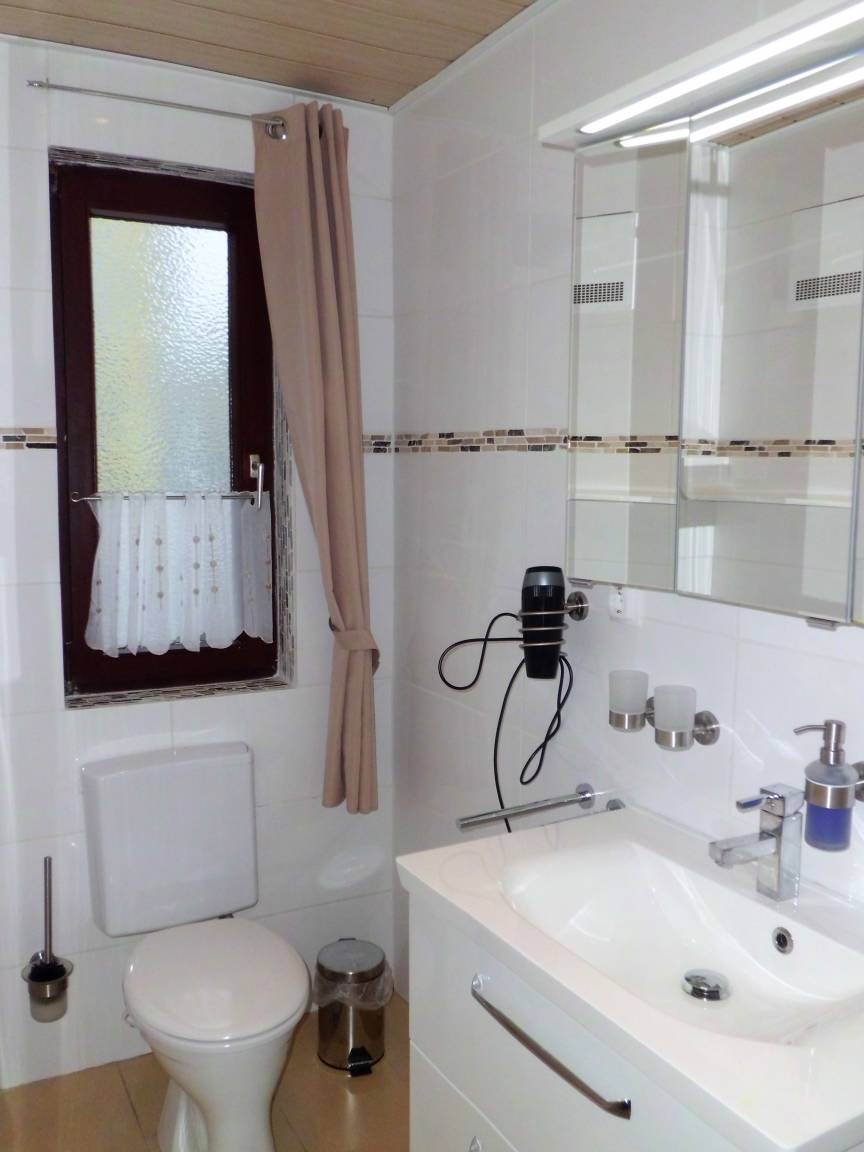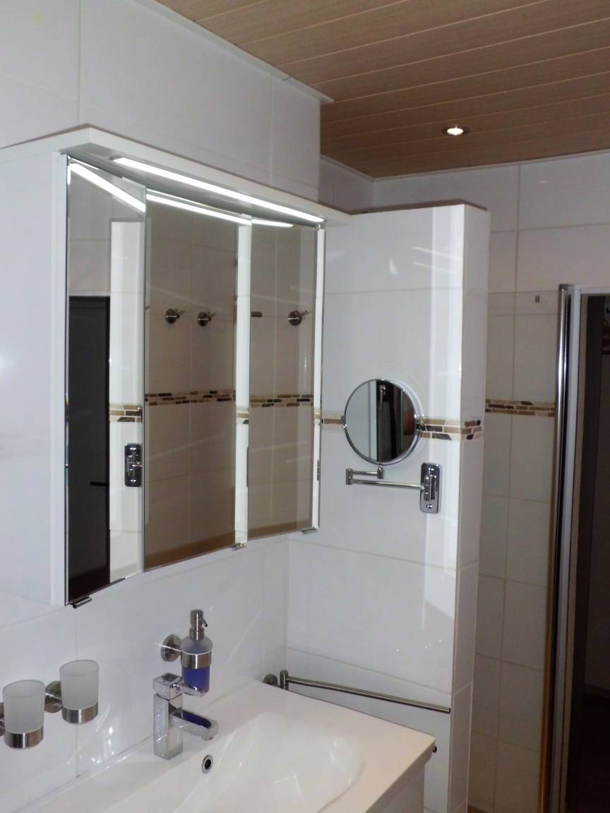 Das Bad ist sehr modern gehalten und hat eine grosse barrierefreie Dusche. Der schöne Waschtisch bietet Ihnen genügend Ablagemöglichkeiten für Ihre Pflegeprodukte