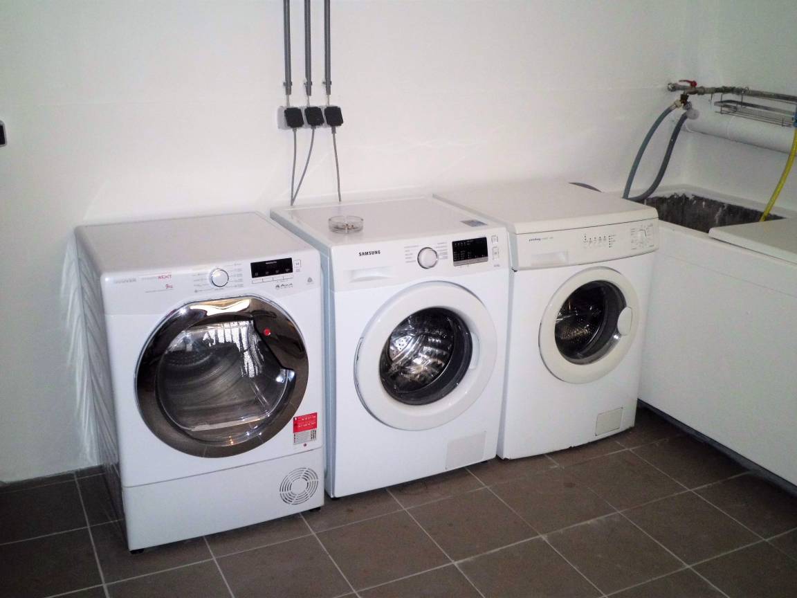Waschmaschine und Trockner können gegen geringe Gebühr mitbenutzt werden.