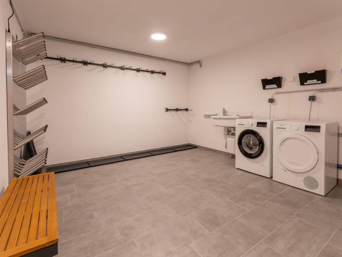 Layout : Parterre: Skiabstellraum(Gemeinschaftliche Nutzung mit anderen Gästen) mit Wäschetrockner(Gemeinschaftliche Nutzung mit anderen Gästen, gegen Gebühr), Waschmaschine(Gemeinschaftliche Nutzung mit anderen Gästen, gegen Gebühr), Skischuhheizung, Bügelbrett, Bügeleisen