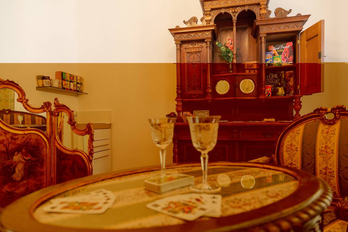 Im gemeinschaftlichen Salon finden Sie eine große Auswahl verschiedener Teesorten, eine Kaffee-Kapselmaschine, zahlreiche Gesellschaftsspiele, einen offenen Bücherschrank, Reiseführer, sowie den Zugang zum großen Balkon mit fantastischer Aussicht.