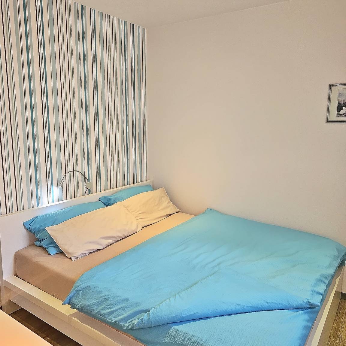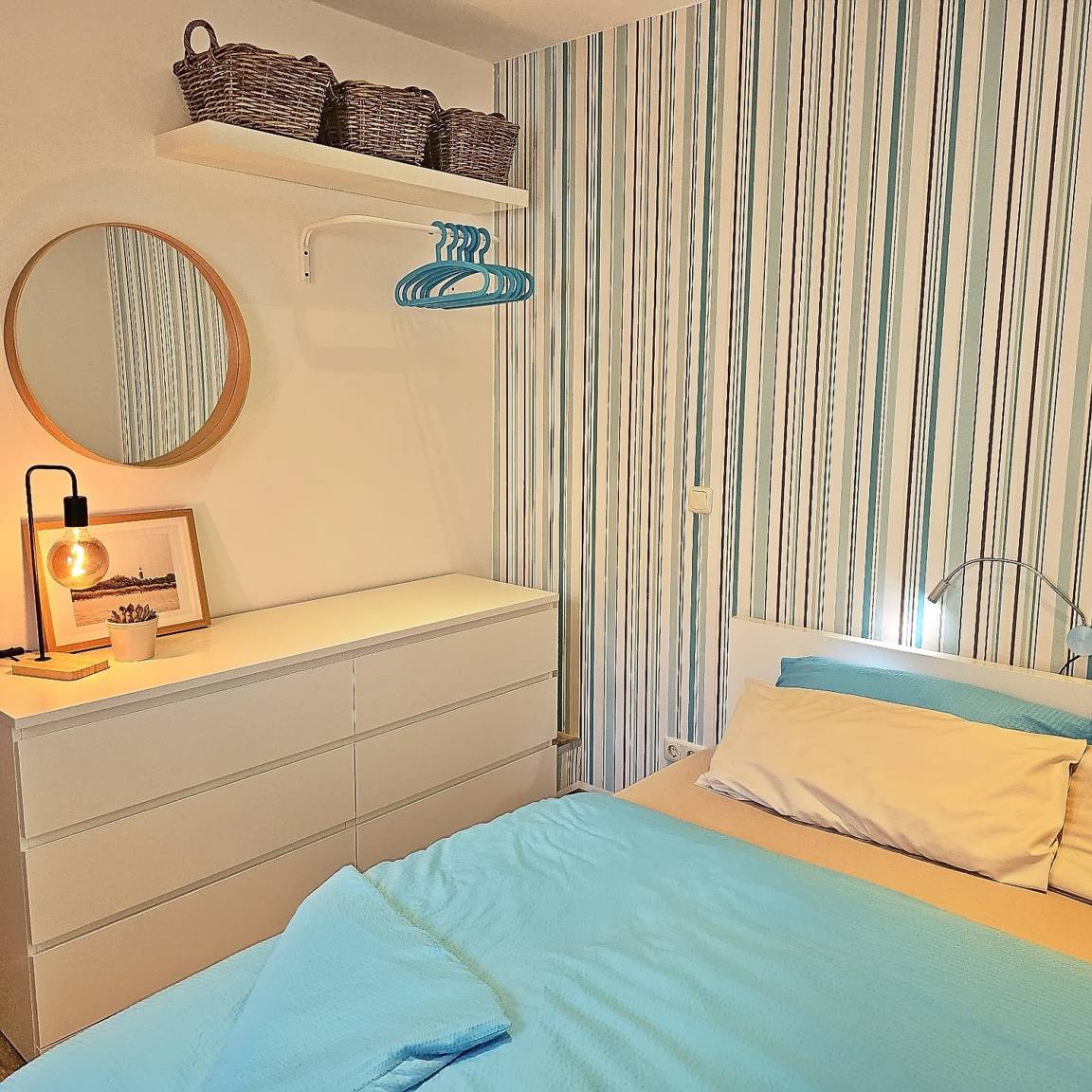 Das Schlafzimmer verfügt über einen großzügigen Kleiderschrank und ein gemütliches Doppelbett