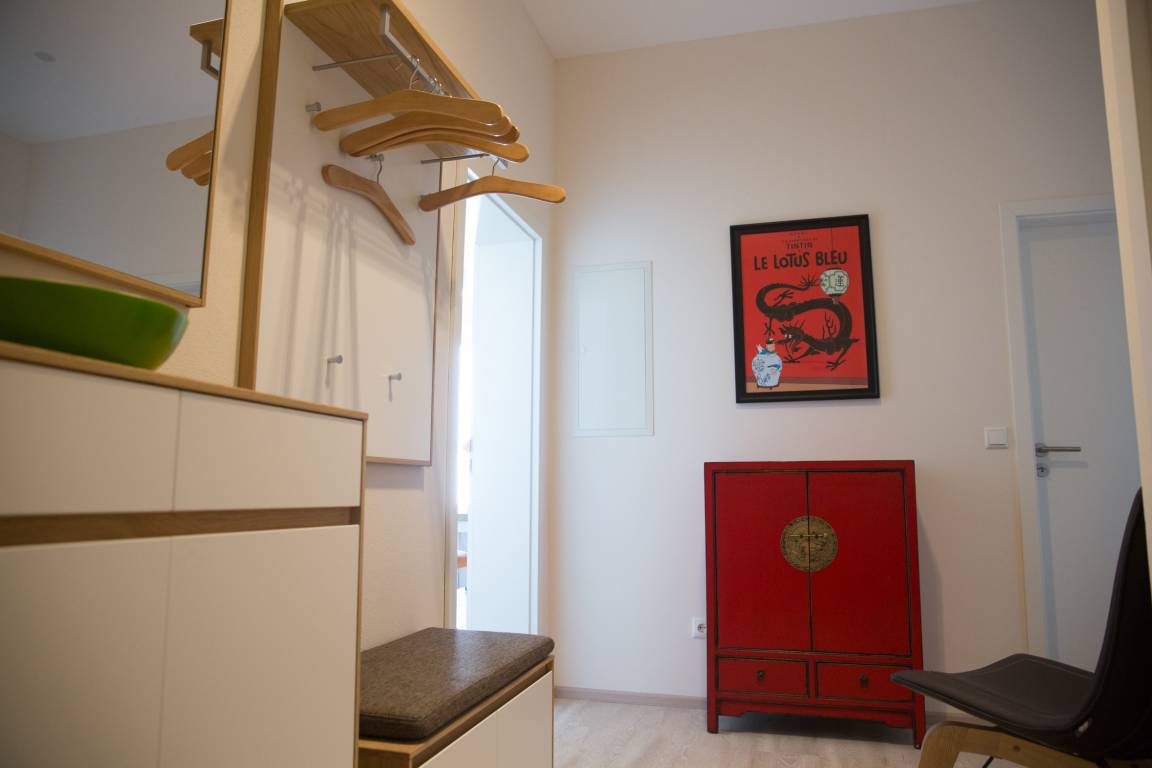 Unsere Wohnung befindet sich im Erdgeschoss und verfügt über eine Terrasse und eigenen Gartenanteil. Die Wohnung ist geräumig, sehr hell und hochwertig eingerichtet.