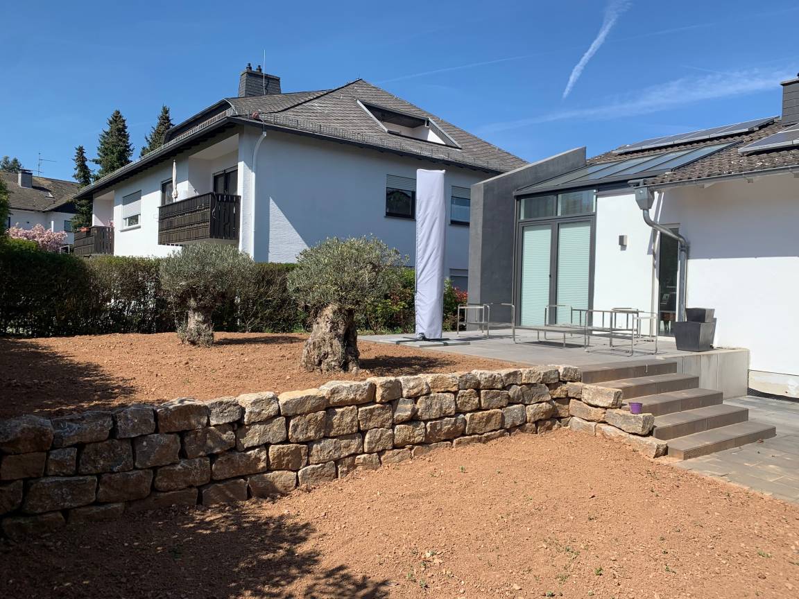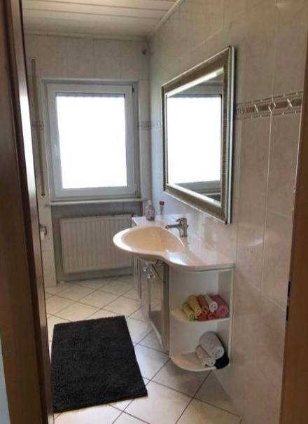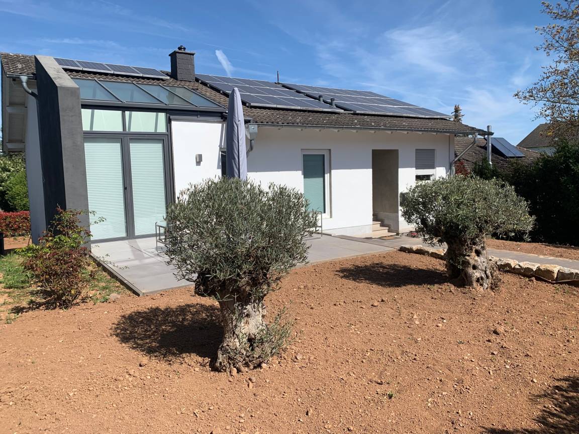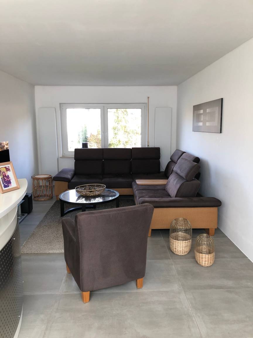 Die Wohnung im Erdgeschoß unseres Einfamilienhauses ist neu renoviert. Der Garten wird neu angelegt, der Rasen wird noch eingesäht.