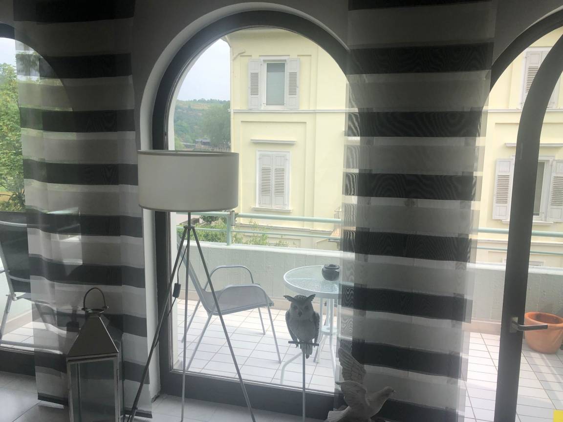 Die Wohnung verfügt über einen großen Balkon mit Blick auf die Nahe.