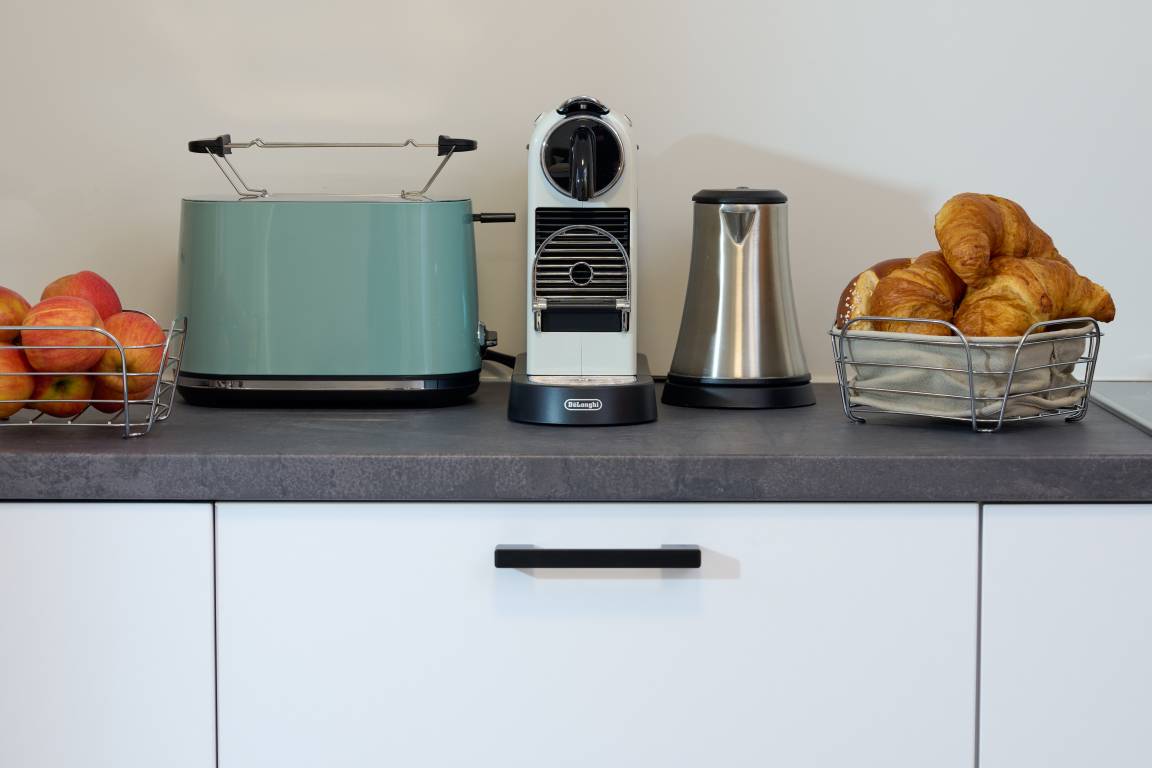 Das kleine Appartement hat trotzdem alles, was es für einen Appartementaufenthalt benötigt. Es ist ein Raumappartement. Das Doppelbett ist ein hochwertiges Boxspringbett, es gibt eine Sitz-Essecke und eine Küchenzeile mit einem 2 Plattenherd, einer Nespressokaffeemaschine, Toaster und einem Wasserkocher. Das Bad ist ebenerdig, ohne Stufen. Das Appartement hat auch eine kleine Terrasse, die Richtung Osten ausgerichtet ist. Das Appartement befindet sich im EG. und ist ohne Stufen zu erreichen. Die Lage des Appartements ist sehr ruhig. Im Bad lässt sich beim Duschen wohlfühlen - in der Dusche umgibt sie ein Schwarzwaldbächle. Eine abschliessbare und sichere Fahrradgarage für E-Bikes und andere Fahrräder ist vorhanden.