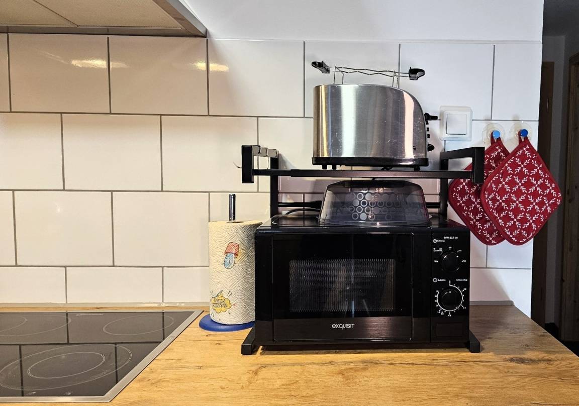 Unsere modern eingerichtete Ferienwohnung verfügt über ein großzügiges Schlafzimmer, ein Wohnzimmer sowie eine Küche und ein Badezimmer. In dem Schlafzimmer befindet sich ein Doppelbett (180 x 200 cm). So haben in der Wohnung maximal zwei erwachsene Personen Platz. Es kann ein Kinderreisebett (Kind bis 3 Jahre) inklusive Bettwäsche bei Bedarf im Schlafzimmer aufgebaut werden. Ein Kinderhochstuhl kann ebenfalls bei Bedarf bereitgestellt werden, beides ohne Extrakosten.