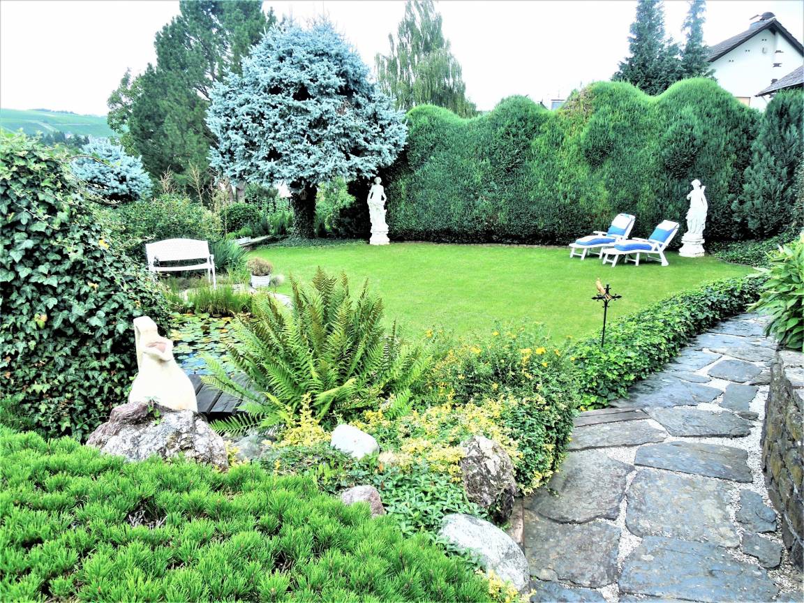 Eine Gartennutzung (u.a. nicht einsehbare Liegewiese, Teichanlage mit Parkbank, Grillplatz) mit einem traumhaften Blick auf die Altstadt und die Weinberge des Ahrtals ist gegeben. Gartenmöbel inkl. Sonnenliegen mit Auflagen, Grillplatz, Sonnenschirme stehen zur Verfügung. Das Anwesen ist sehr gepflegt und bietet allen Gästen ungestörte Stunden in einem äußerst gepflegten Außenbereich.