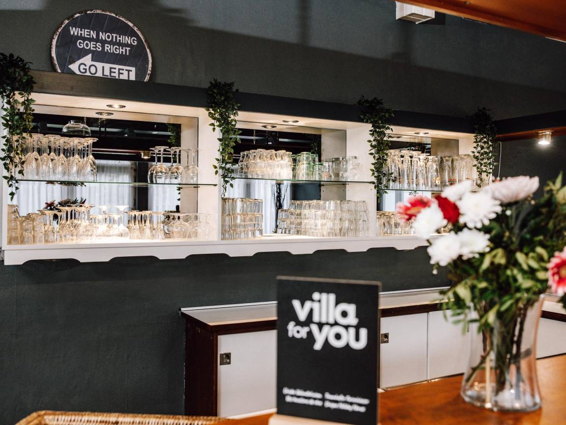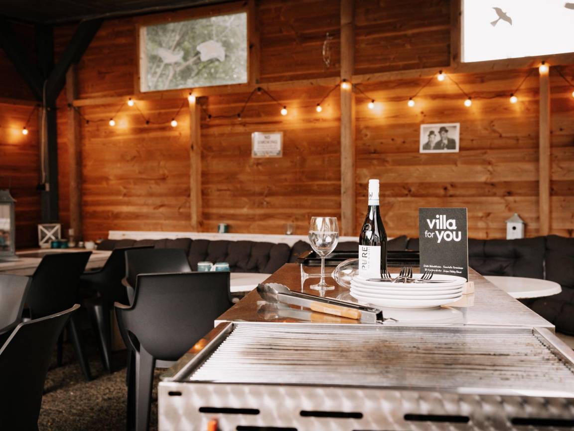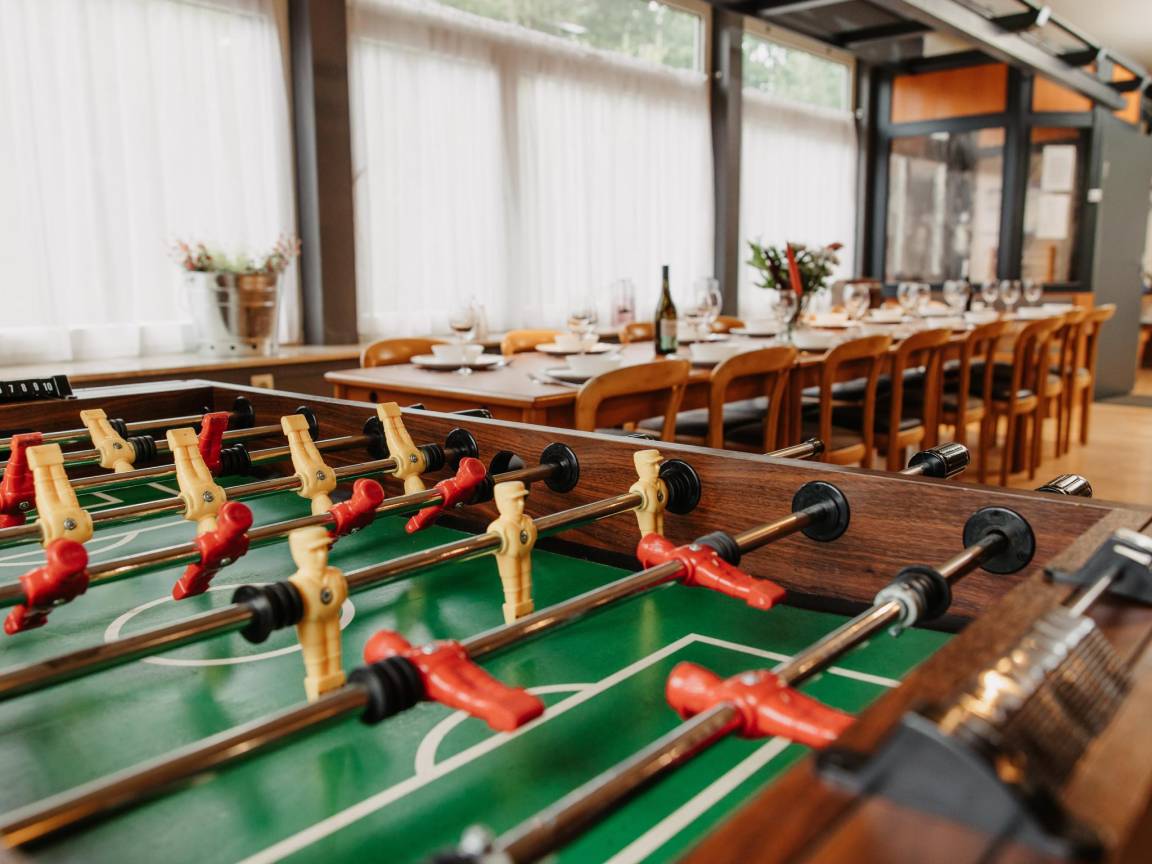 Layout : Parterre: Eingang, Diele, Wohnzimmer mit Sitzecke , Aufenthaltsraum mit TV(Flatscreen, Satellit, smart TV, Niederländische TV-Kanäle), Esstisch, Bar, Tischfußball, Billard , Küche mit Wasserkocher, Toaster, Kochherd(6 Kochplatten, Induktion), Dunstabzugshaube, Kaffeemaschine(Filter, Vollautomat), 3x Backofen, Mikrowelle, 2x Geschirrspüler, 2x Kühlschrank(+ Gefrierfach), Kühl-/Gefrierkombination, Zitruspresse, Stabmixer , Toilette mit Waschbecken, Toilette , Toilette mit Waschbecken, Toilette, Urinal