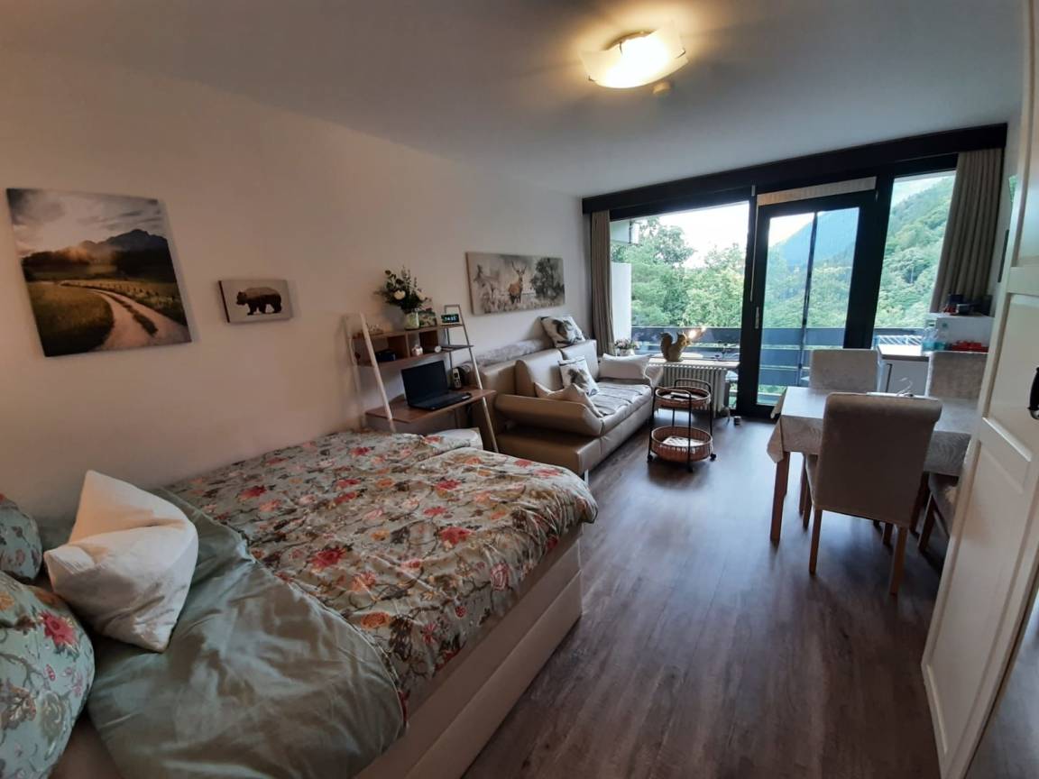 Vom Balkon bzw. der Loggia haben Sie einen herrlichen Blick auf die Predigtstuhlbahn. Die roten Gondeln fahren dort zum Hausberg von Bad Reichenhall, dem Predigtstuhl, in der Hochsaison alle 20 Minuten hinauf- und hinunter.