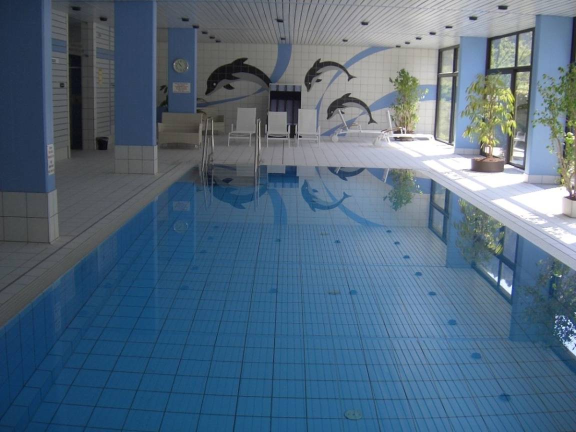 Im Haus befindet sich ein beheiztes Schwimmbad. Sie können im (mitgebrachten) Bademantel mit dem Fahrstuhl zum Schwimmbad fahren und dort auch den Fitnessraum mit diversen Fitnessgeräten und Tischtennisplatte nutzen. Tischtennisschläger und Bälle befinden sich in der Fewo.