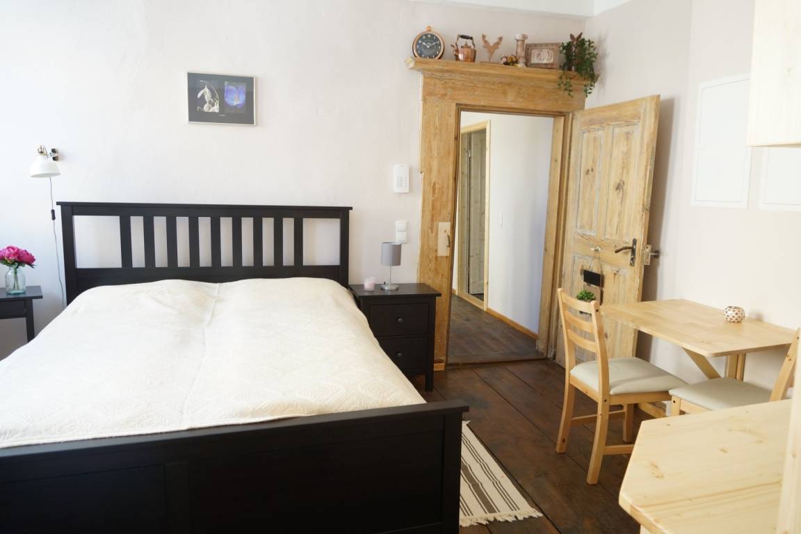 Das moderne Ferienzimmer mit Charme und zentraler Lage am Markt in Bad Rodach. Ideal für Ihren Kurzurlaub und Wellnessurlaub in der Therme Natur. Das modern eingerichtete Zimmer bietet Ihnen einen Schlafbereich mit Doppelbett, geräumigen Bad und einer kleinen Küchenzeile.
