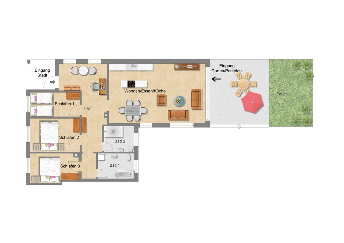 105 m² Ferienwohnung ∙ 3 Schlafzimmer ∙ 6 Gäste