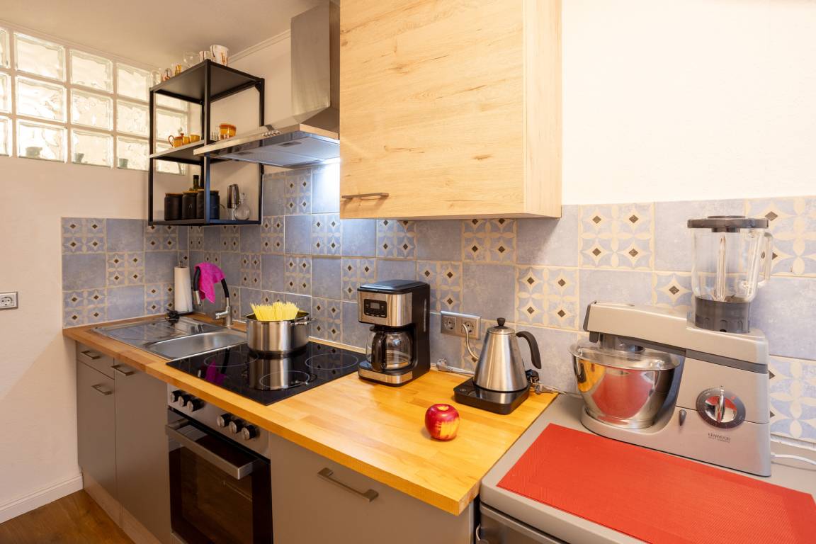 Hochwertige Möbel, harmonische Farben und sorgfältig ausgewählte Dekoration sorgen für ein Ambiente, das Ruhe und Gemütlichkeit ausstrahlt. Eine moderne Küchenzeile mit allem, was Sie für die Zubereitung von Mahlzeiten benötigen, von einem Kochfeld bis hin zu edlem Geschirr. Ein komfortables Schrankbett mit weichen Textilien lädt zu erholsamen Nächten ein. Als Ausweichmöglichkeit steht Ihnen eine Schlafcouch zur Verfügung. Eine gemütliche Sitzecke mit Smart-TV bietet Raum zum Entspannen nach einem Tag in der Natur. Das Bad sticht mit stilvollem Design durch Dusche, Waschtisch und WC hervor. Wellnessangebote stehen Ihnen im gegenüberliegenden Hotel zur Verfügung. Wäschepakete sind beim Vemieter optional zubuchbar. Das Apartment liegt ruhig und zentral im zweiten Stock einer kleinen Wohnanlage (kein Aufzug vorhanden), nur wenige Minuten vom Kurpark und den Wanderwegen des Harzes entfernt. Egal, ob Sie die Natur genießen, historische Orte entdecken oder einfach entspannen möchten – "HarzZeit Bad Sachsa" ist der ideale Ausgangspunkt. Genießen Sie die Symbiose aus stilvoller Einrichtung und der natürlichen Schönheit des Harzes. Wir freuen uns darauf, Sie willkommen zu heißen!