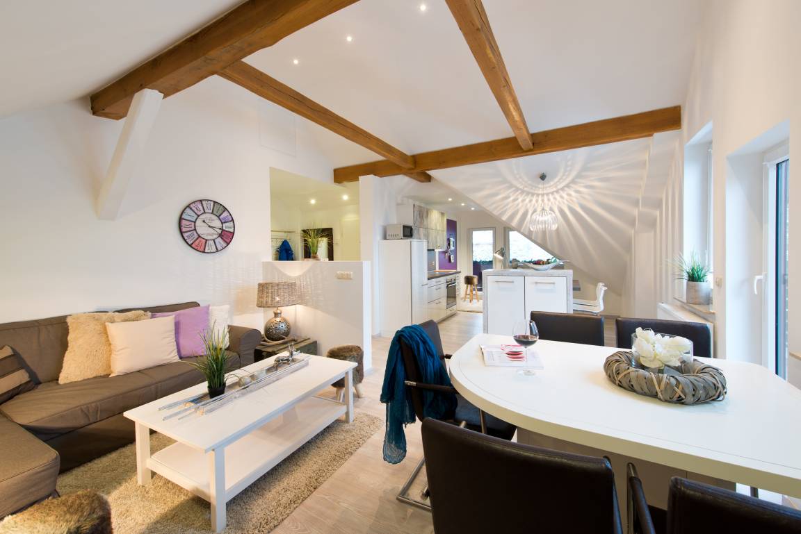 Jede unserer drei Ferienwohnungen bieten Ihnen Platz für 2 bis max. 5 Personen und bestechen durch eine moderne, hochwertige Einrichtung. Die drei 90-110 qm großen 3-Raum Ferienwohnungen sind ausgestattet mit Wohn- & Schlafzimmer, einer hochwertigen Küche sowie jeweils ein Badezimmer mit großer Dusche, Doppelwaschtisch, WC und ein zweites separates WC. Neben der Terrasse bzw. Balkon/Loggia steht Ihnen zusätzlich der Garten mit Grillplatz zur freien Verfügung.