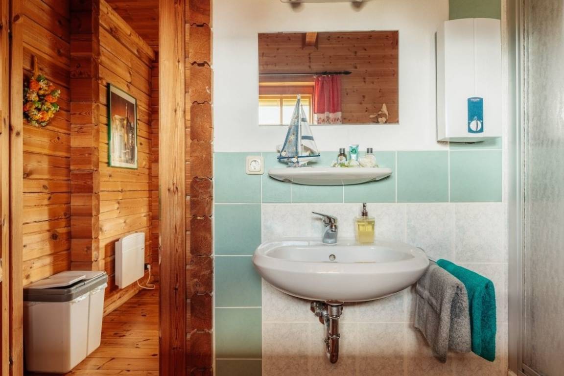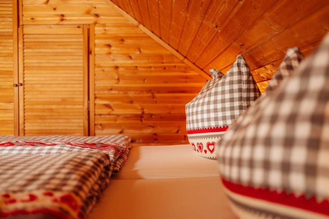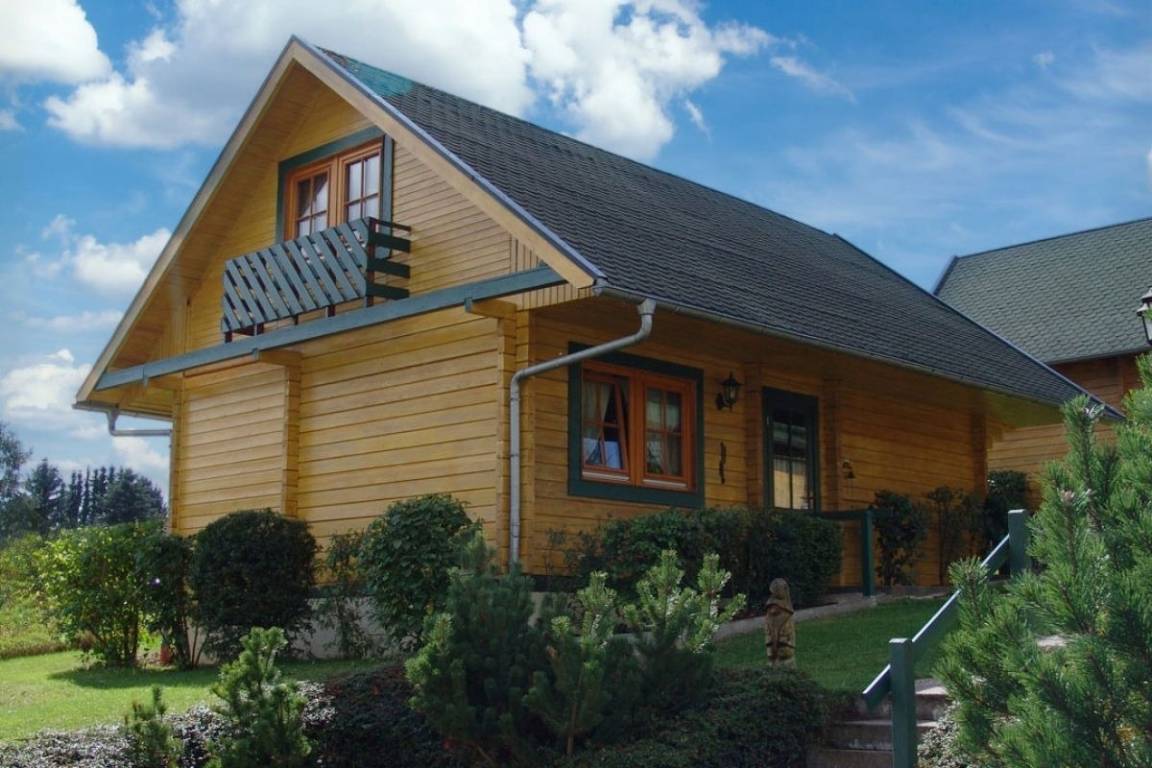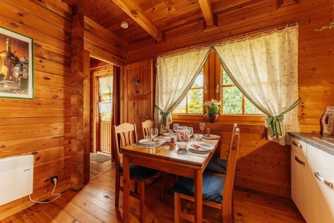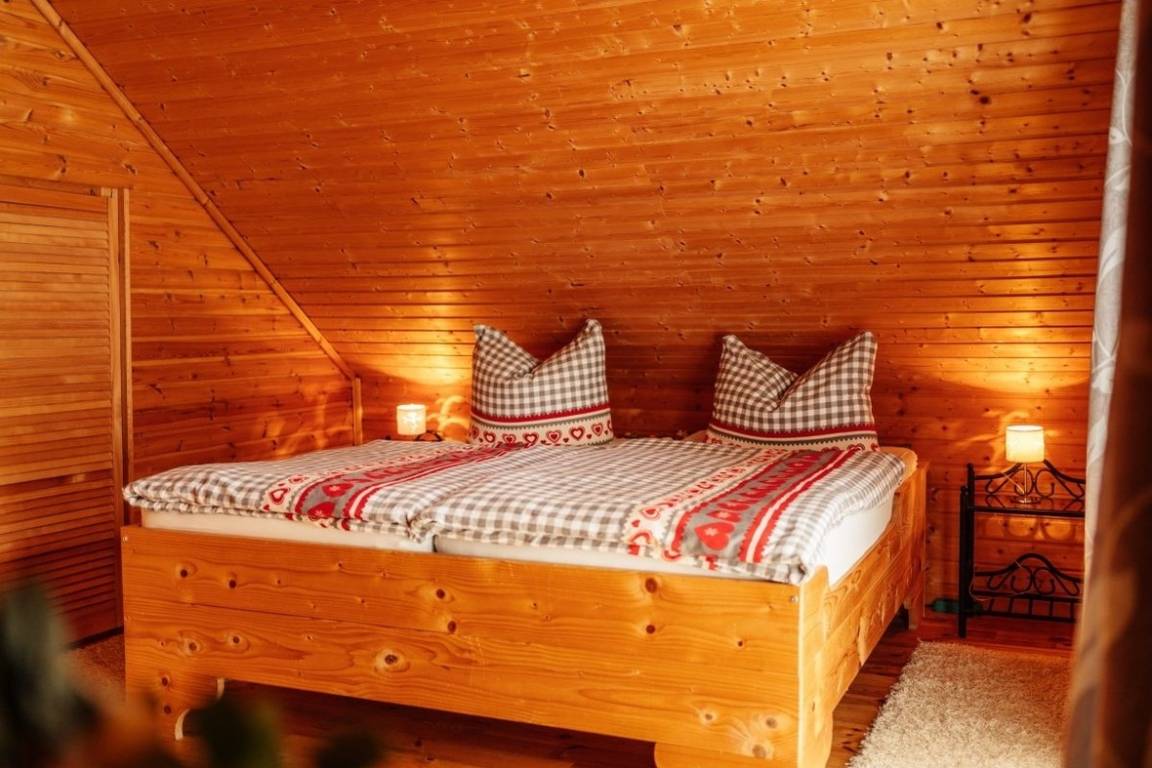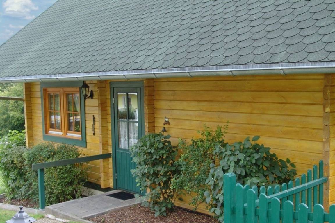Das Blockhaus ist ca 80qm groß und erstreckt sich über 2 Etagen. Im Erdgeschoß befinden sich Küche, Bad und Wohnzimmer im Obergeschoß die Schlafräume. Das Ferienhaus ist für eine Belegung mit max. 6 Personen ausgestattet. Es verfügt über eine Terrasse, einen kleinen Garten und ist komplett eingezäunt. Das Holz ist naturbelassen.