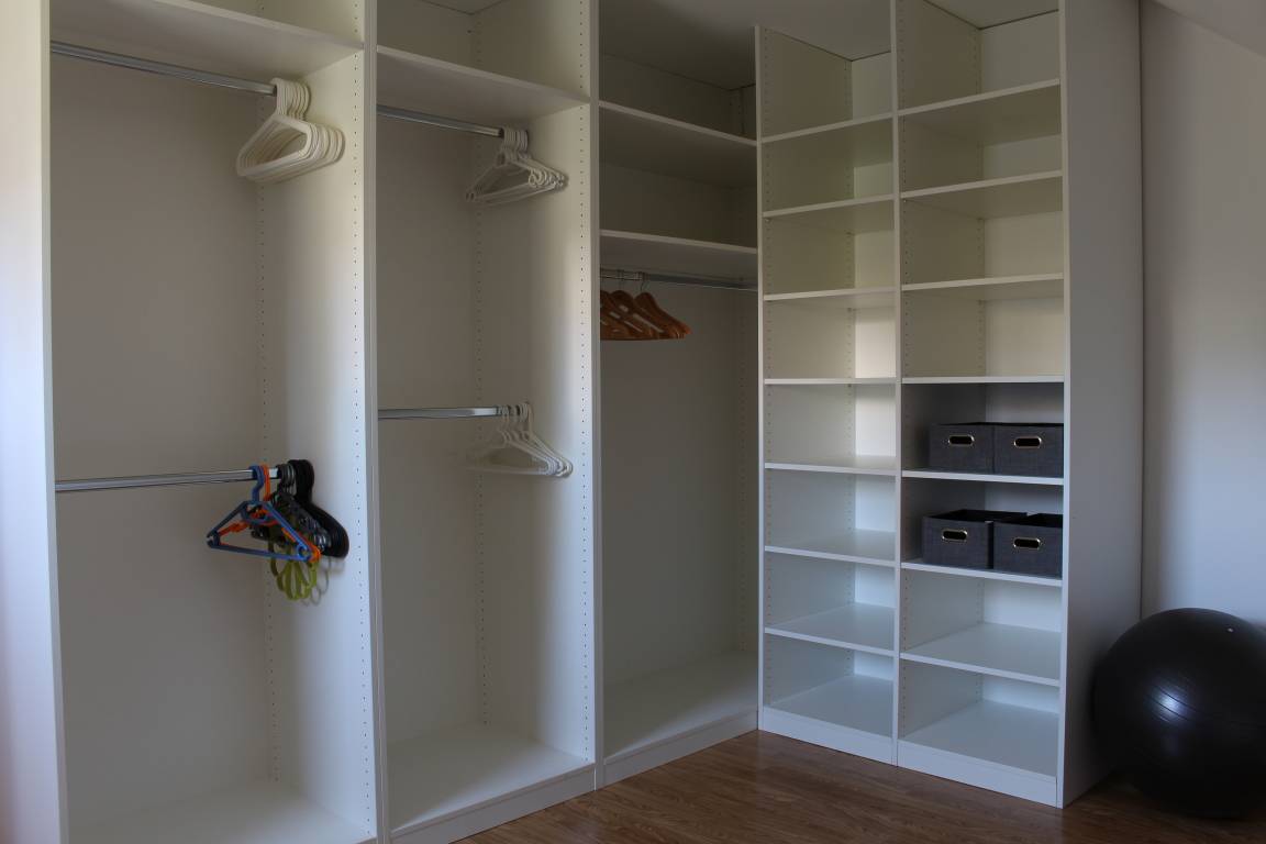 Ein Schlafzimmer mit Doppelbett, Spiegel und kleiner Sitzecke und ein weiteres Schlafzimmer mit Einzelbett und Büromöbel sind vorhanden. In einem separaten Zimmer befindet sich ein begehbarer Kleiderschrank.